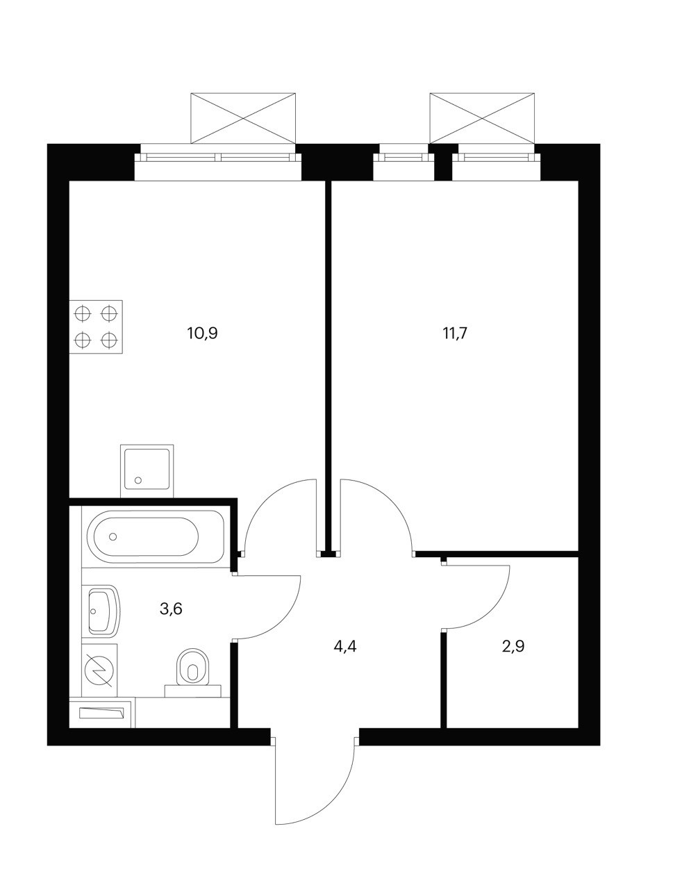 Площадь кухни 10.9 м2