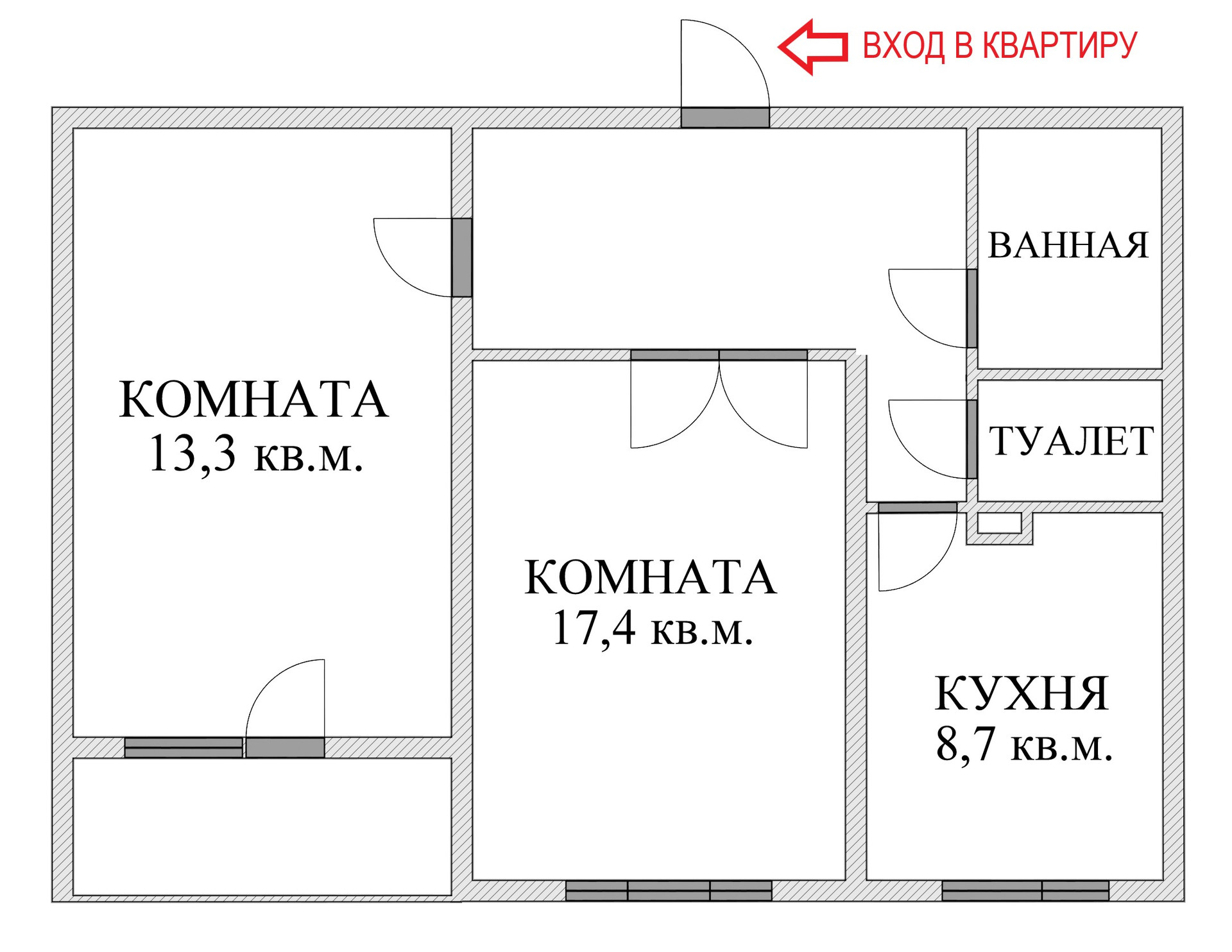 Жилая площадь 30.7 м2