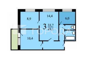 3-комнатная квартира, 51.1 м2, этаж 1 / 9, на продажу в Москве, улица Академика Варги, 28