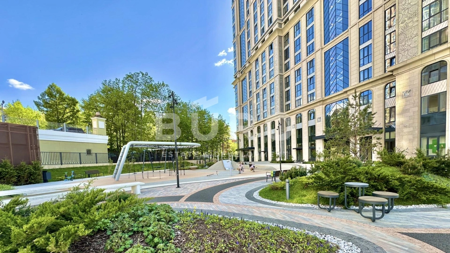 В тихом ландшафтном дворе обустроены детские и спортивные площадки. Под авторской перголой создана зона для встреч и игр.