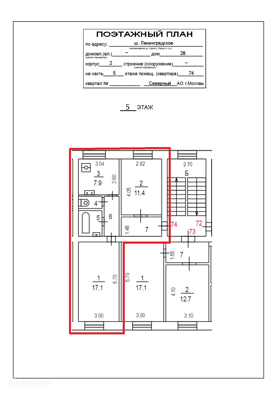 2-комнатная квартира, 48.7 м2, этаж 5 / 5, на продажу в Москве, Ленинградское шоссе, 28к2