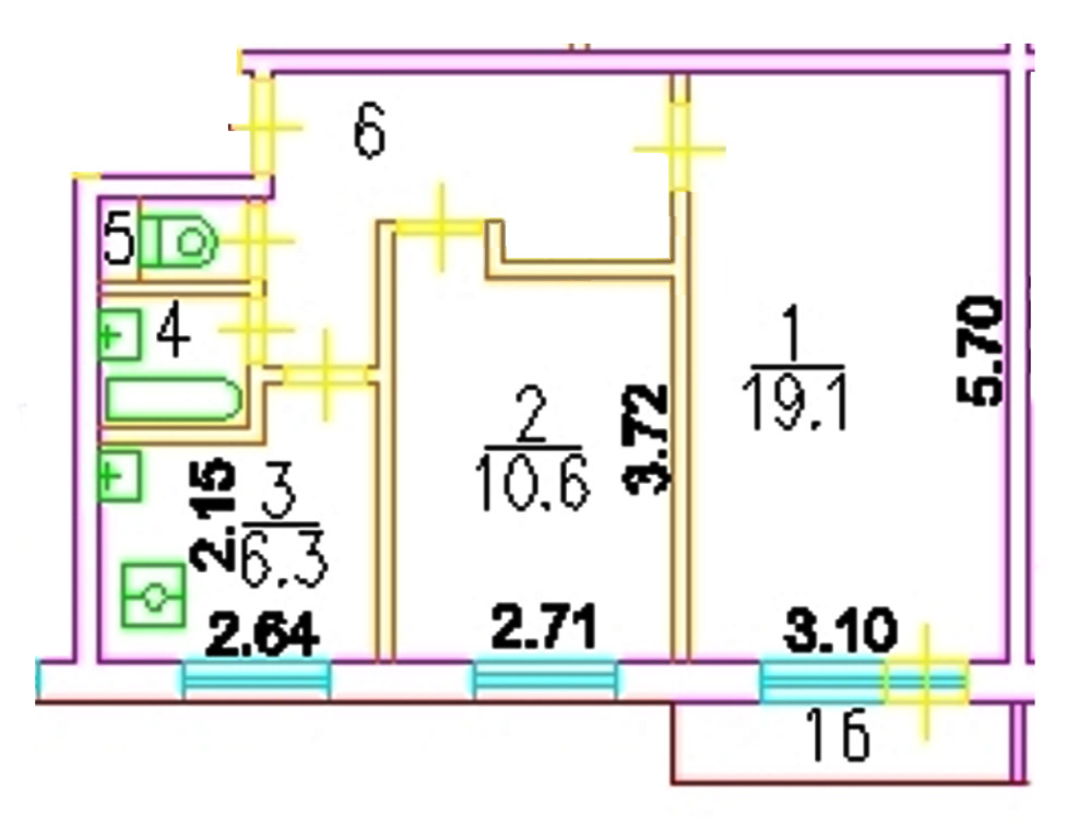 •    Жилая площадь: 29,7 м2 (19,1 / 10,6), комнаты изолированные;