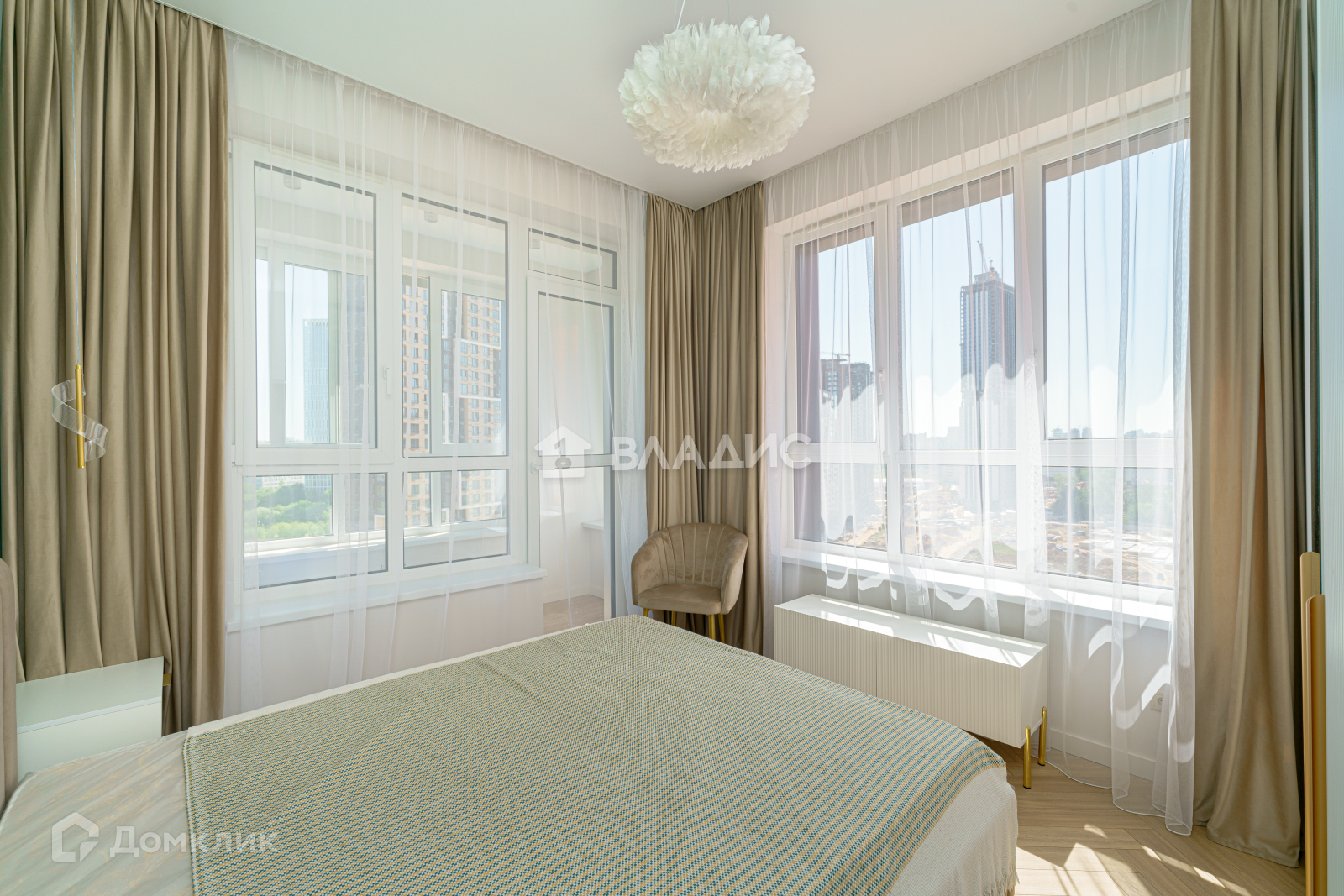 Окна смотрят на две стороны, на МГУ, Москва-Сити и в сторону церкви.