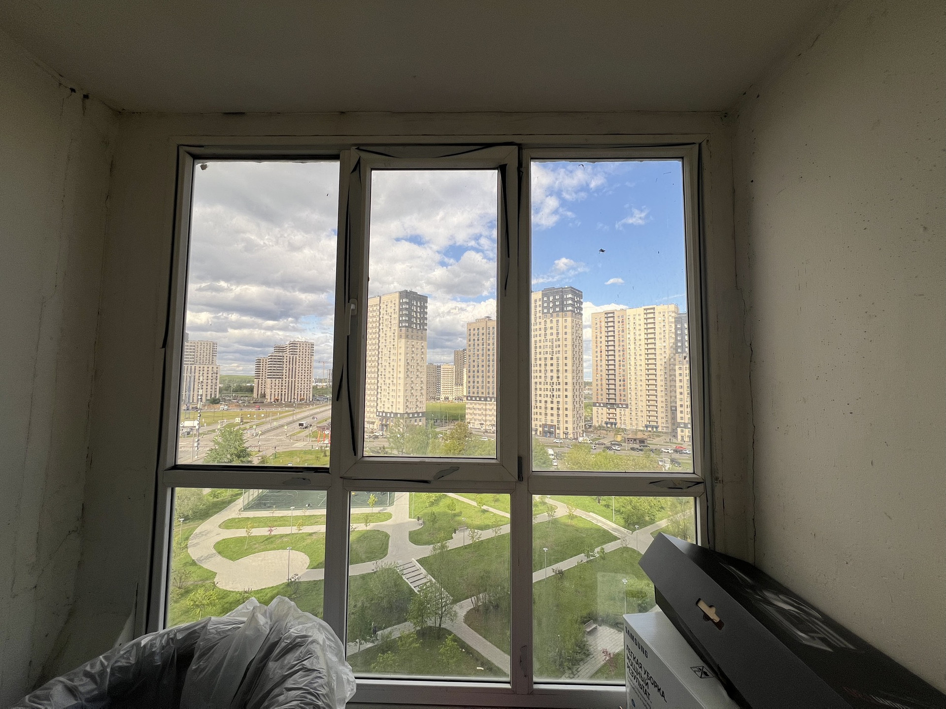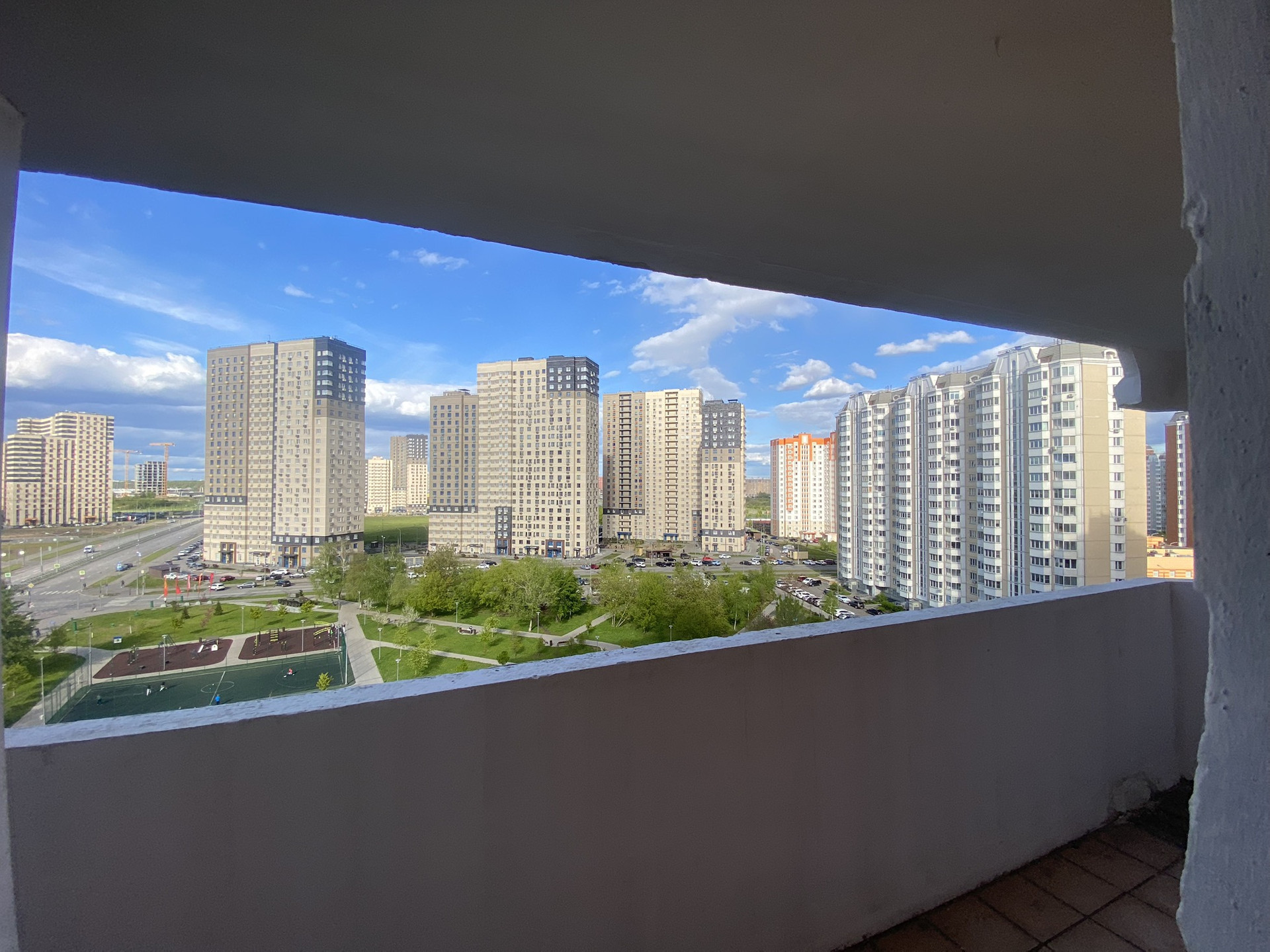 Окна выходят на обе стороны дома (распашная). Одни на сквер, другие на парк Некрасовка. В парке церковь, спортивный комплекс, Московская ярмарка, строится торговый центр.