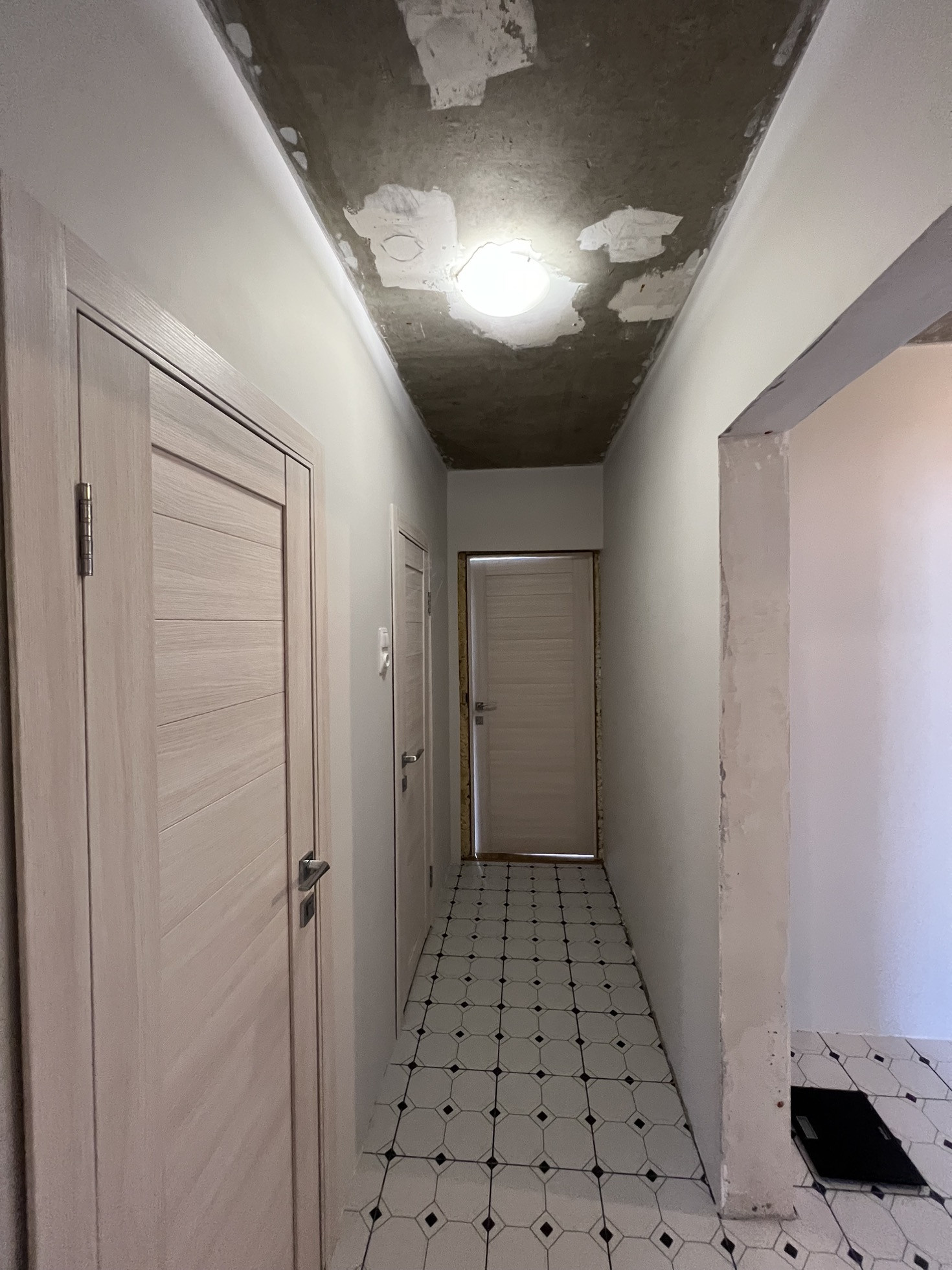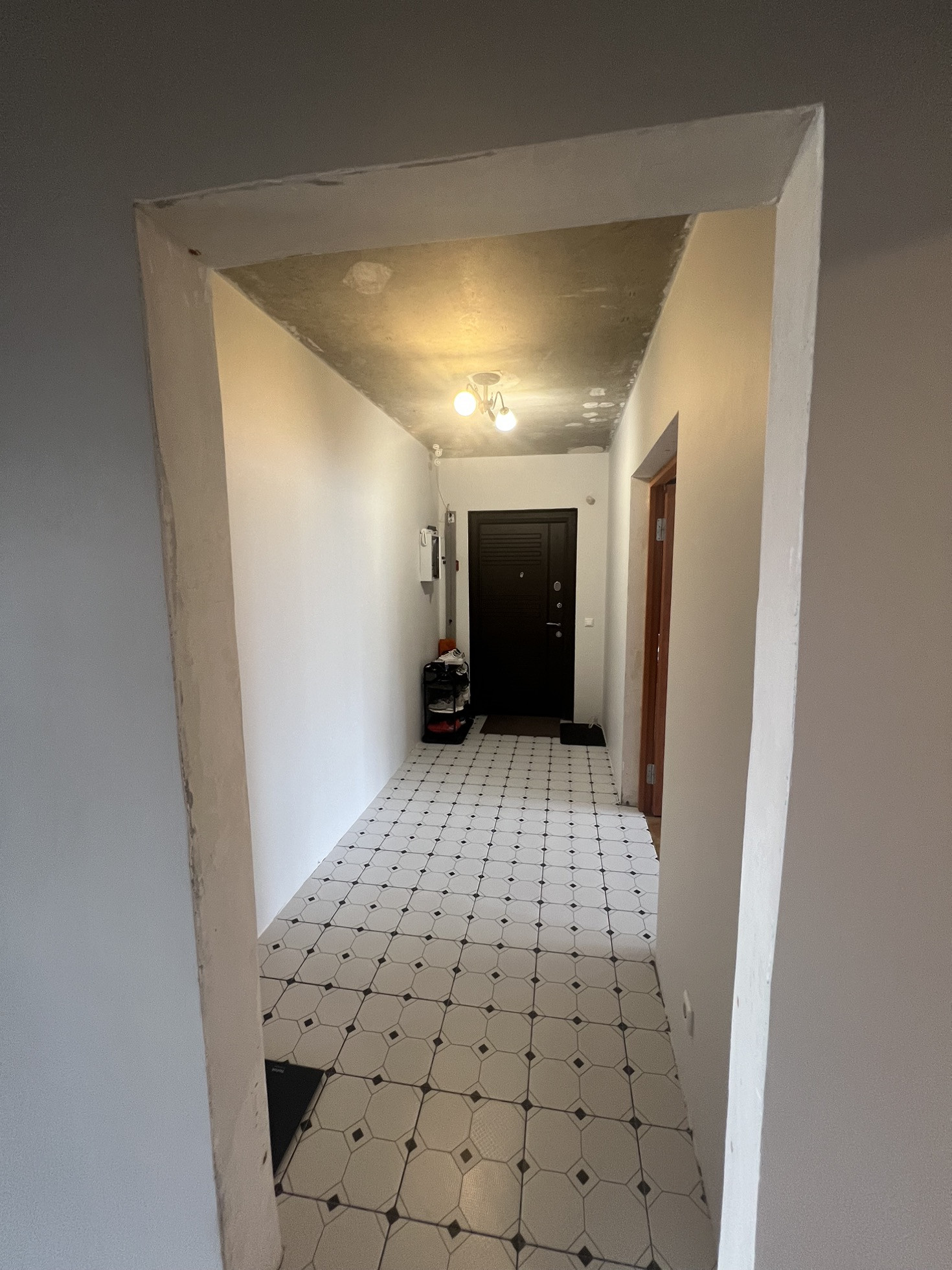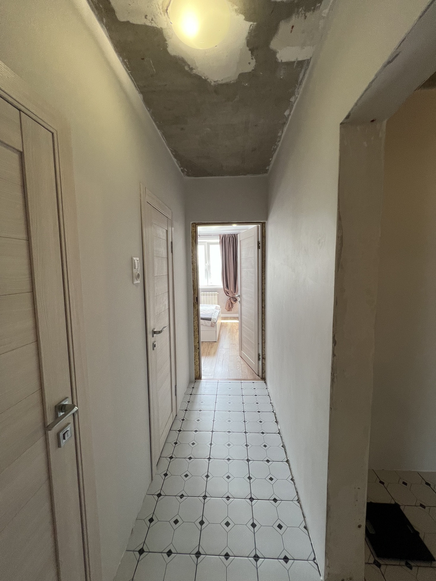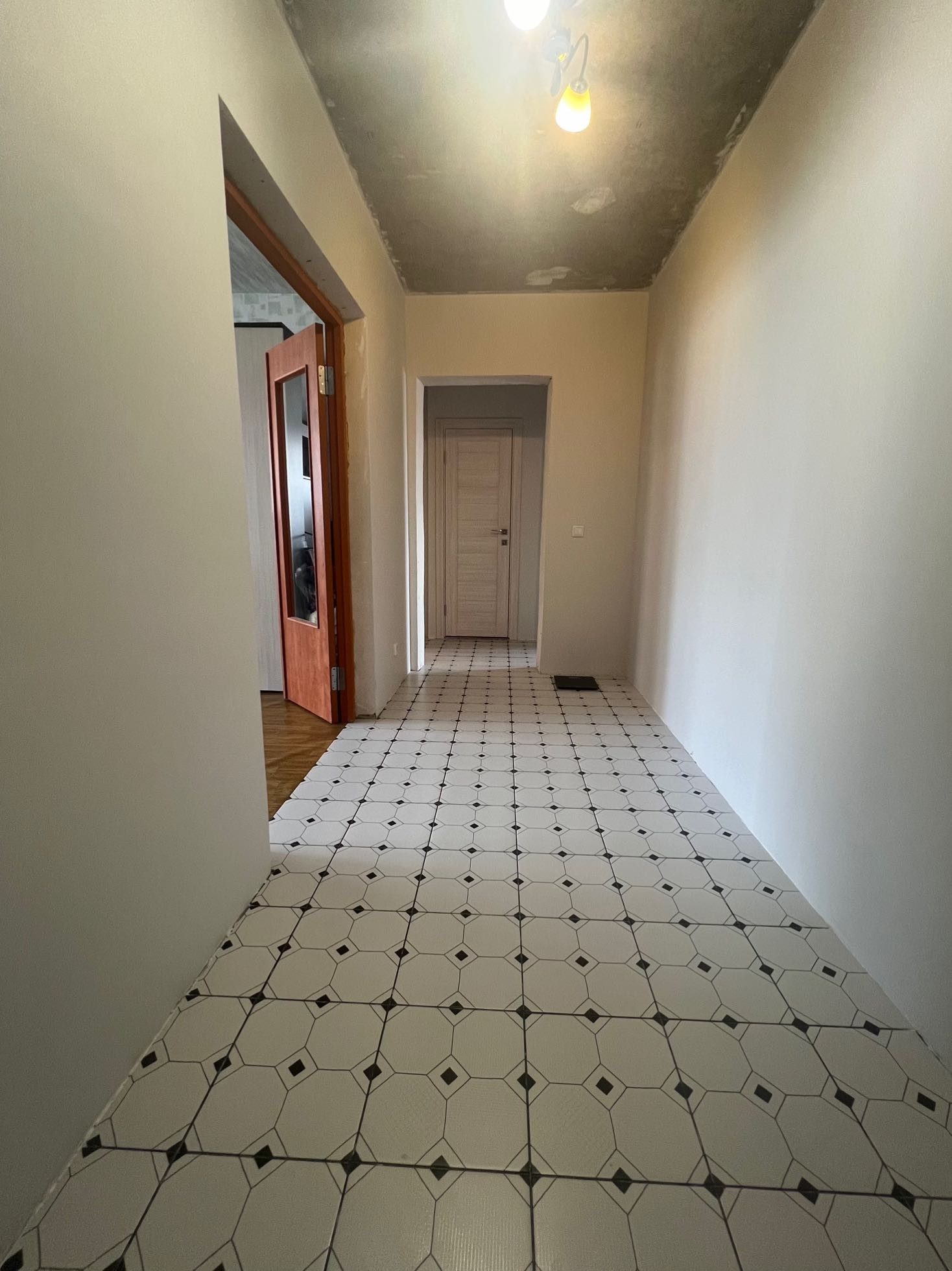 В коридоре и на кухне плитка.