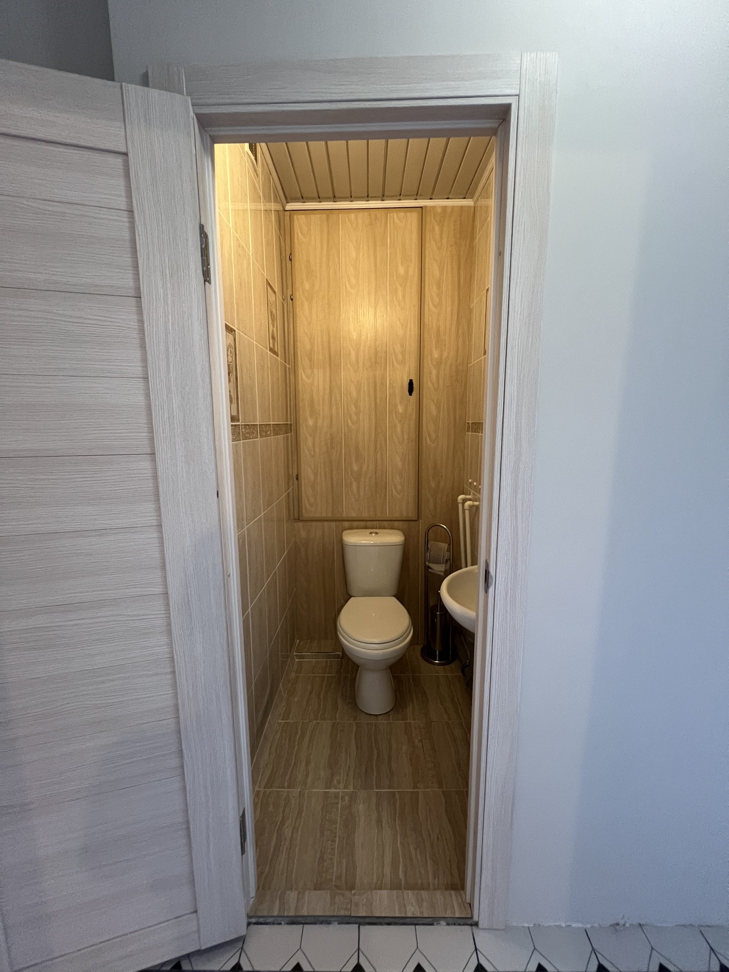 В доме всегда тепло, + трубы идут по полу, что делает плитку в коридоре теплой.