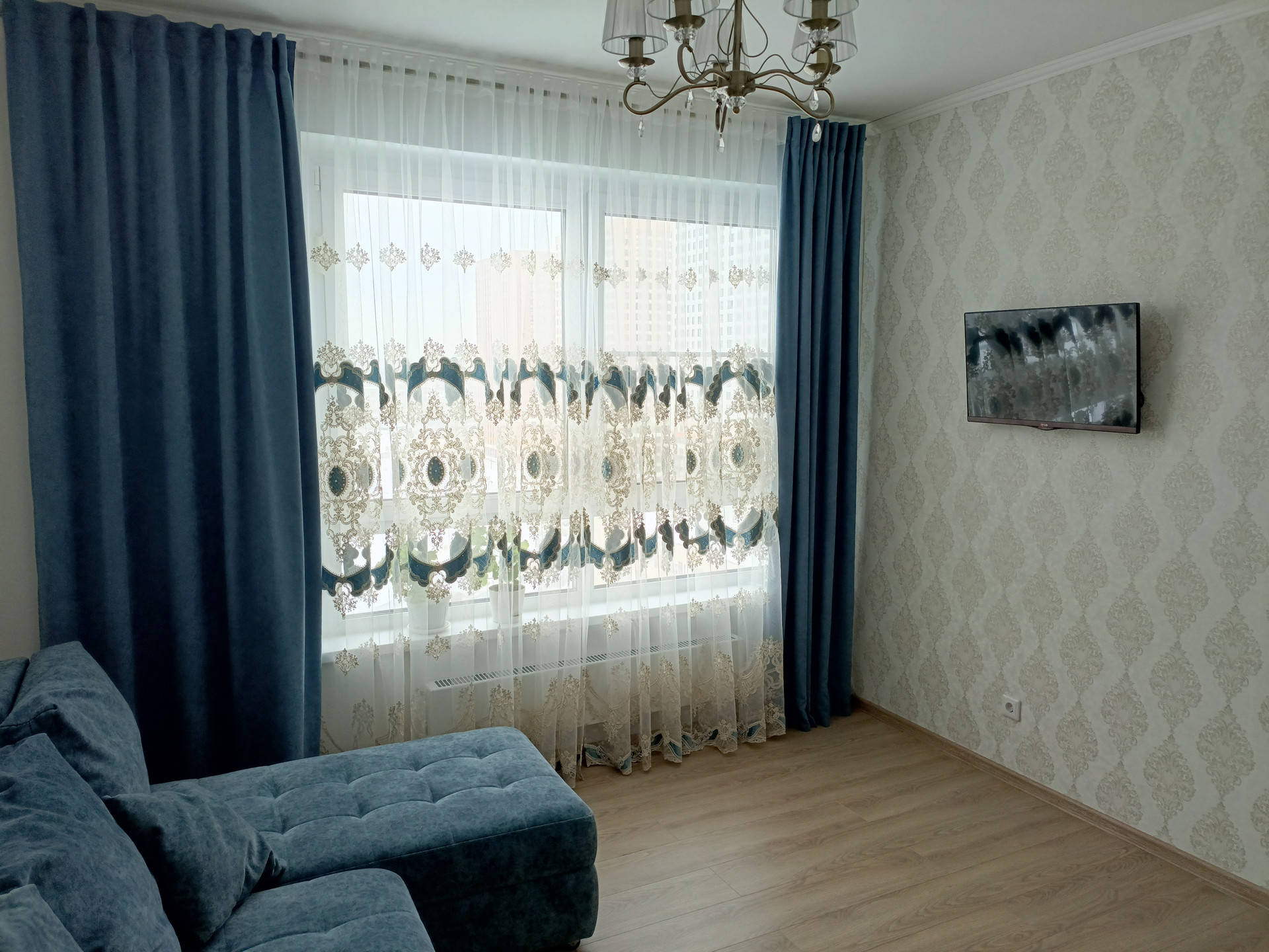 Квартира с ремонтом от застройщика, площадью 70 м.кв с лоджией, комнаты 12/13/20, кухня 11, с/у раздельный, кв.угловая, с окнами на сев-вост. сторону, теплая, не солнечная, имеется в спальне кондиционер. Потолок 2.8 м. -штукатуренный, обои под покраску, на полу плитка, ламинат в комнатах. Остается кухонная мебель и спальный гарнитур.