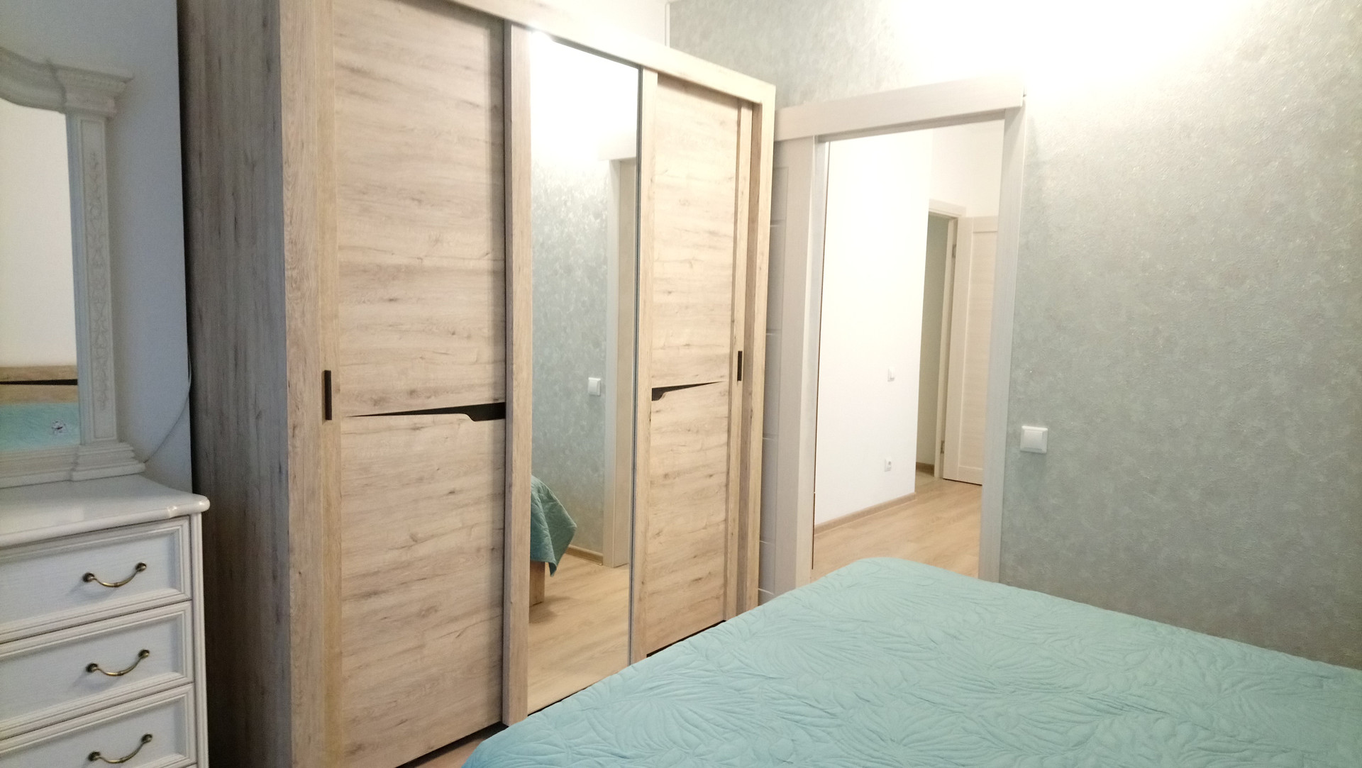 Двушка переделанная в 3-х комн.кв. на 12/24 эт. монолитно-панельного дома в развивающемся ЖК, где уже функционирует школа и д/сад, имеется автобусное движение, магазины и сфера услуг.