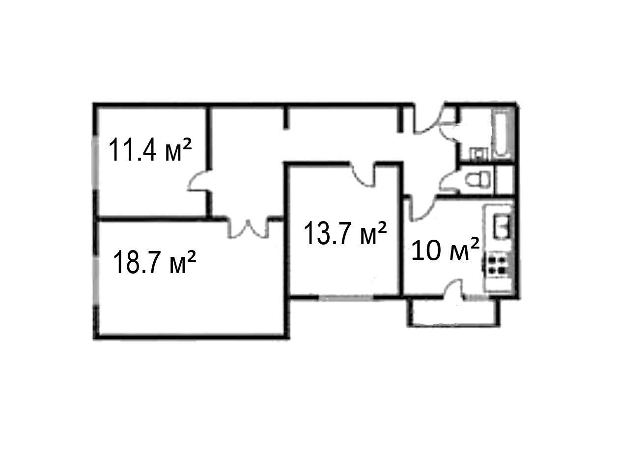 Жилая площадь 43.8 м2
