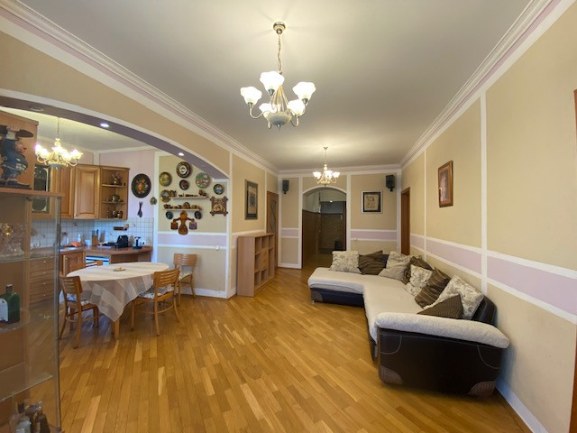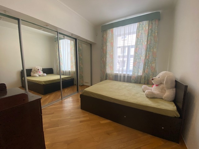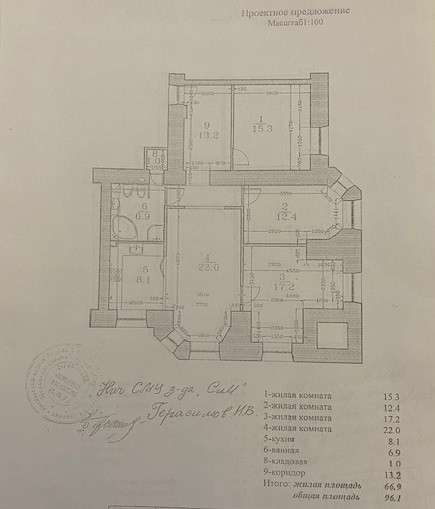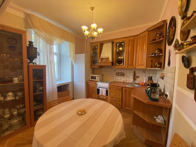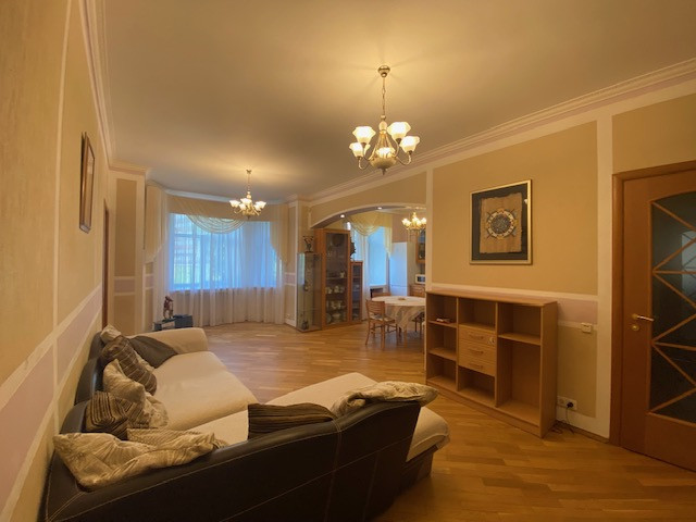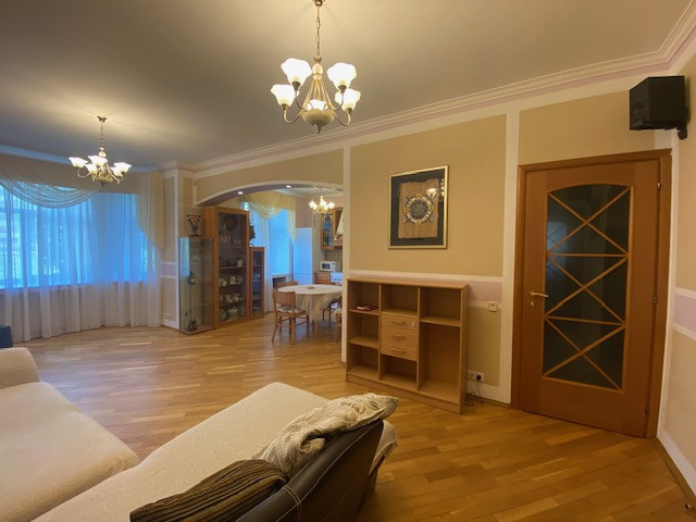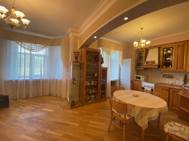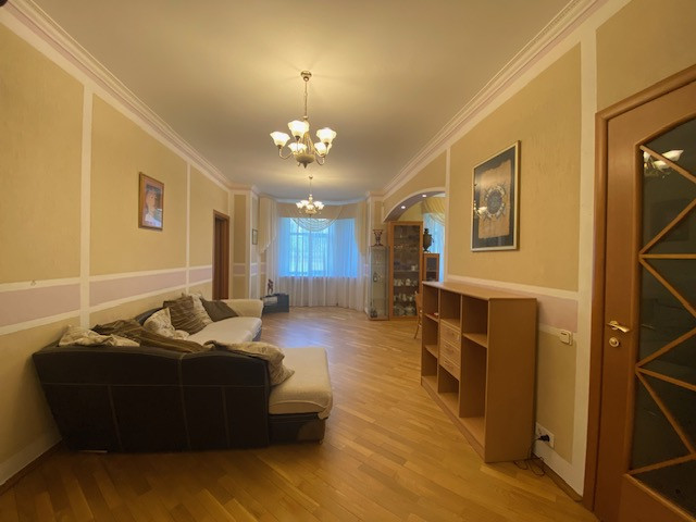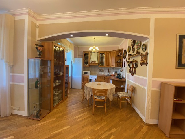 Планировка квартиры: Общая площадь-97,8кв.м., жилая площадь-66,9кв.м., комнаты-15,3кв.м., 12,4кв.м., 17,2кв.м., 22кв.м., кухня-8,1кв.м., ванна-7кв.м., коридор 13,2кв.м., комнаты изолированы: 17,2-12,4-15,3, кухня-гостинная 31кв.м., санузел совмещен, балкона нет, высота потолков 3,2кв.м., в доме газовая плита, на полу паркет, есть потайная комната. Квартира распашная(окна на 2 стороны). Этаж фактически 3, так как отчет идет без учета 0 этажа. В доме 2 лифта, 4 квартиры на этаже, подъезд отремонтированный. Есть бесплатная стоянка для авто, двор облагорожен и установлены лавочки для отдыха.