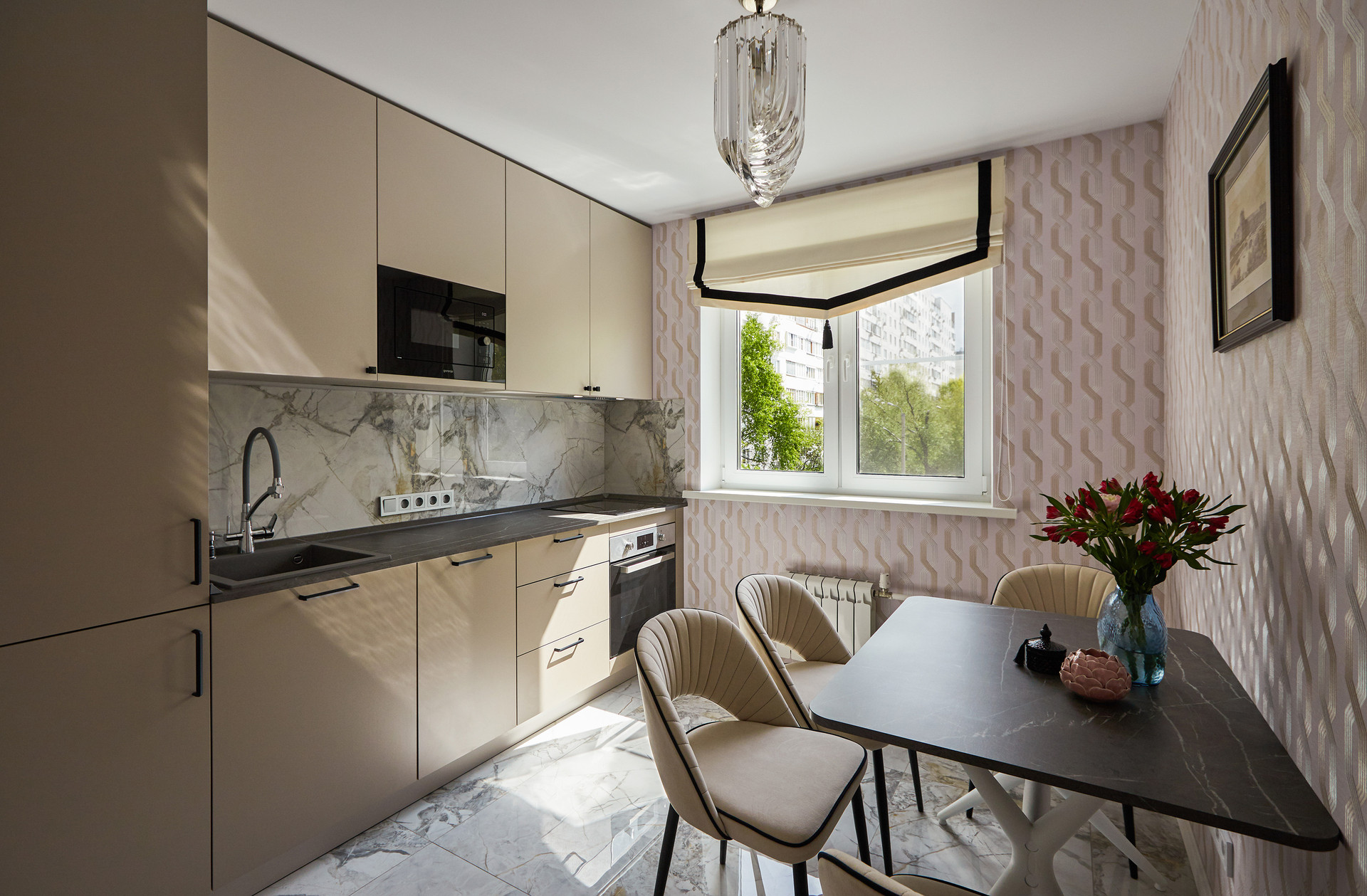 В квартире только что сделан качественный дизайнерский ремонт в стиле неоклассицизм. Заменены абсолютно все коммуникации. Сделана новая стяжка, звукоизоляция, несколько сценариев освещения и система от протечек Нептун. Мебель в комнате из натурального дерева, тканевый натяжной потолок, на полу инженерная доска (дуб). Просторная ванная комната с дорогой сантехникой. Кухня оборудована всей необходимой техникой. Отдельная гардеробная комната и вместительный шкаф в коридоре. Все продумано до мелочей для комфортной и яркой жизни.