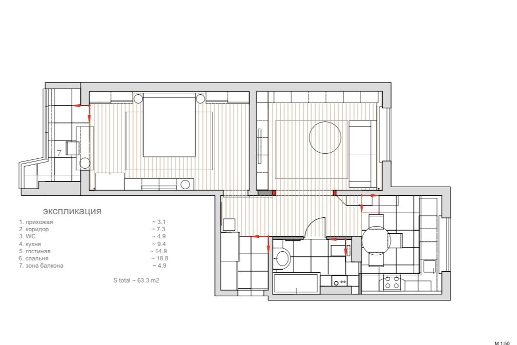 Общая площадь 58.1 м2