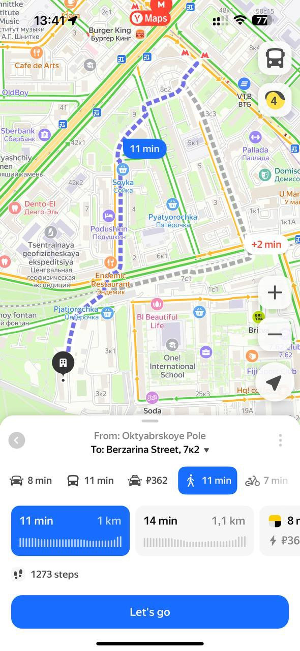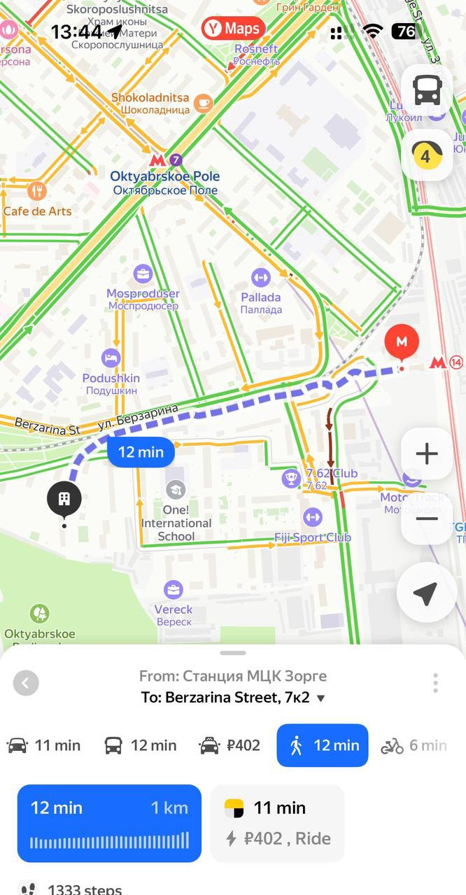 Пешая доступность до метро.