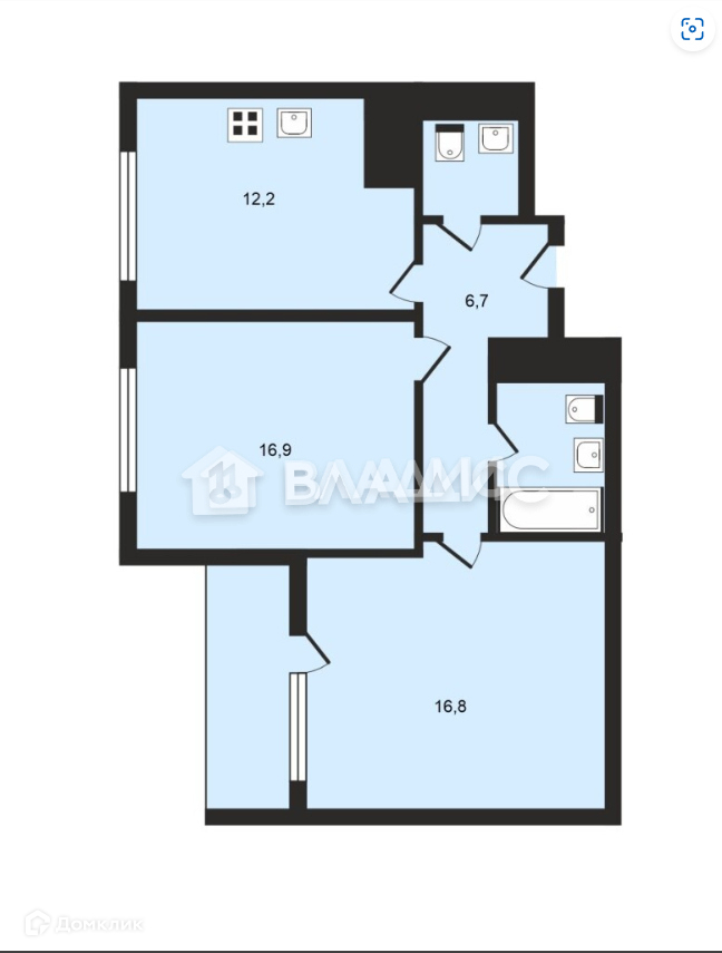 Общая площадь 59.9 м2