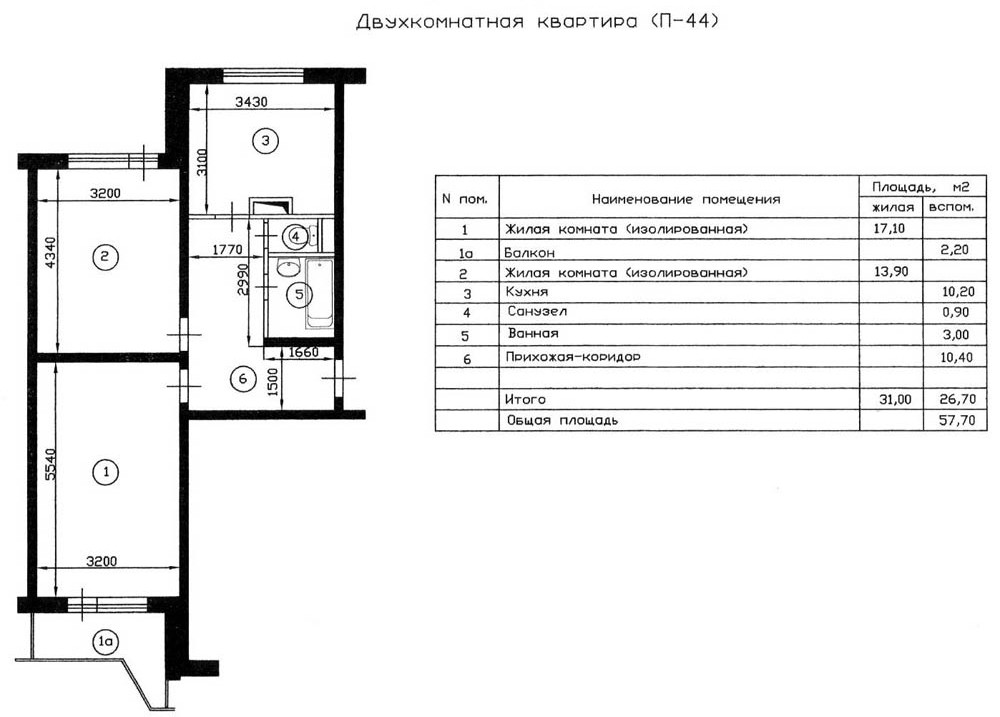 Общая площадь 58 м2