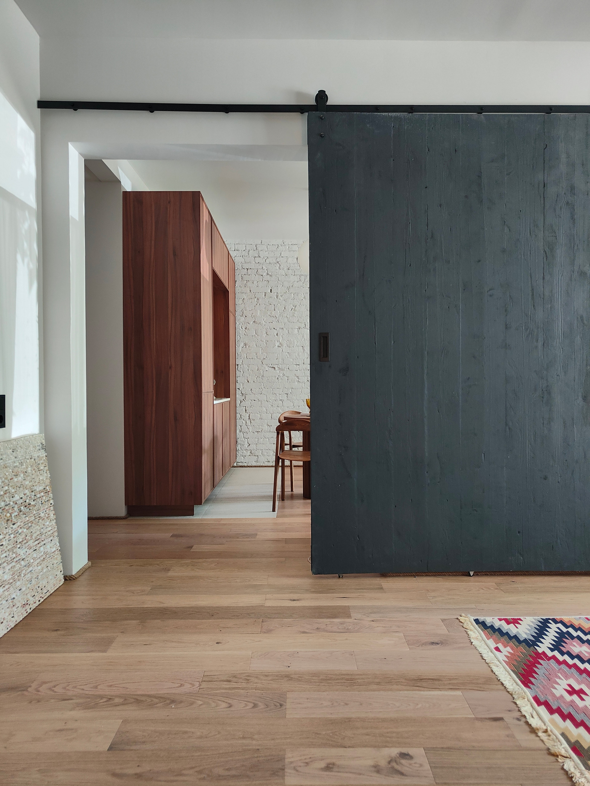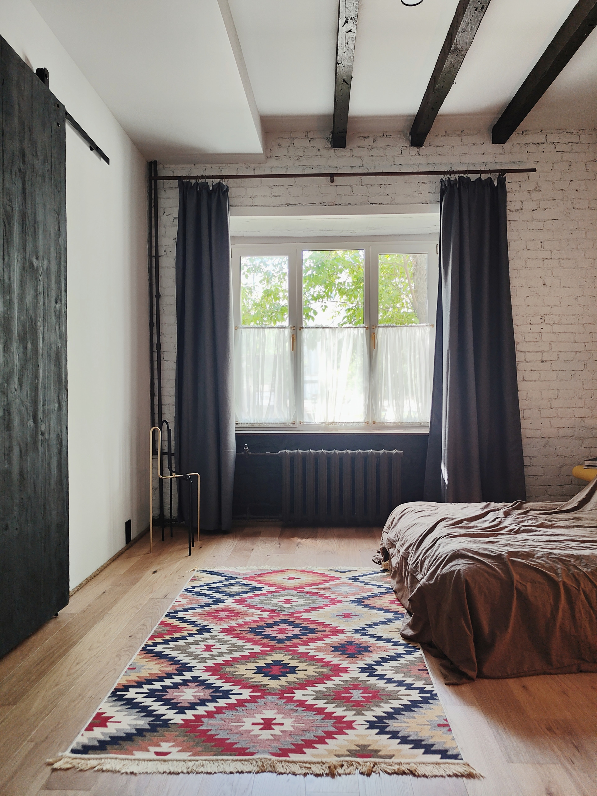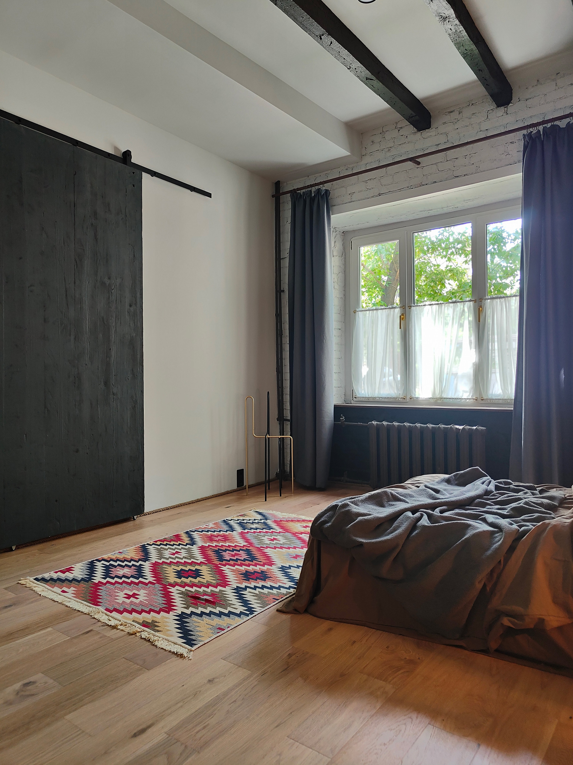 В ванной комнате два окна и отдельно стоящая ванна. Квартиру украшает старинная амбарная дверь из Ярославля.
