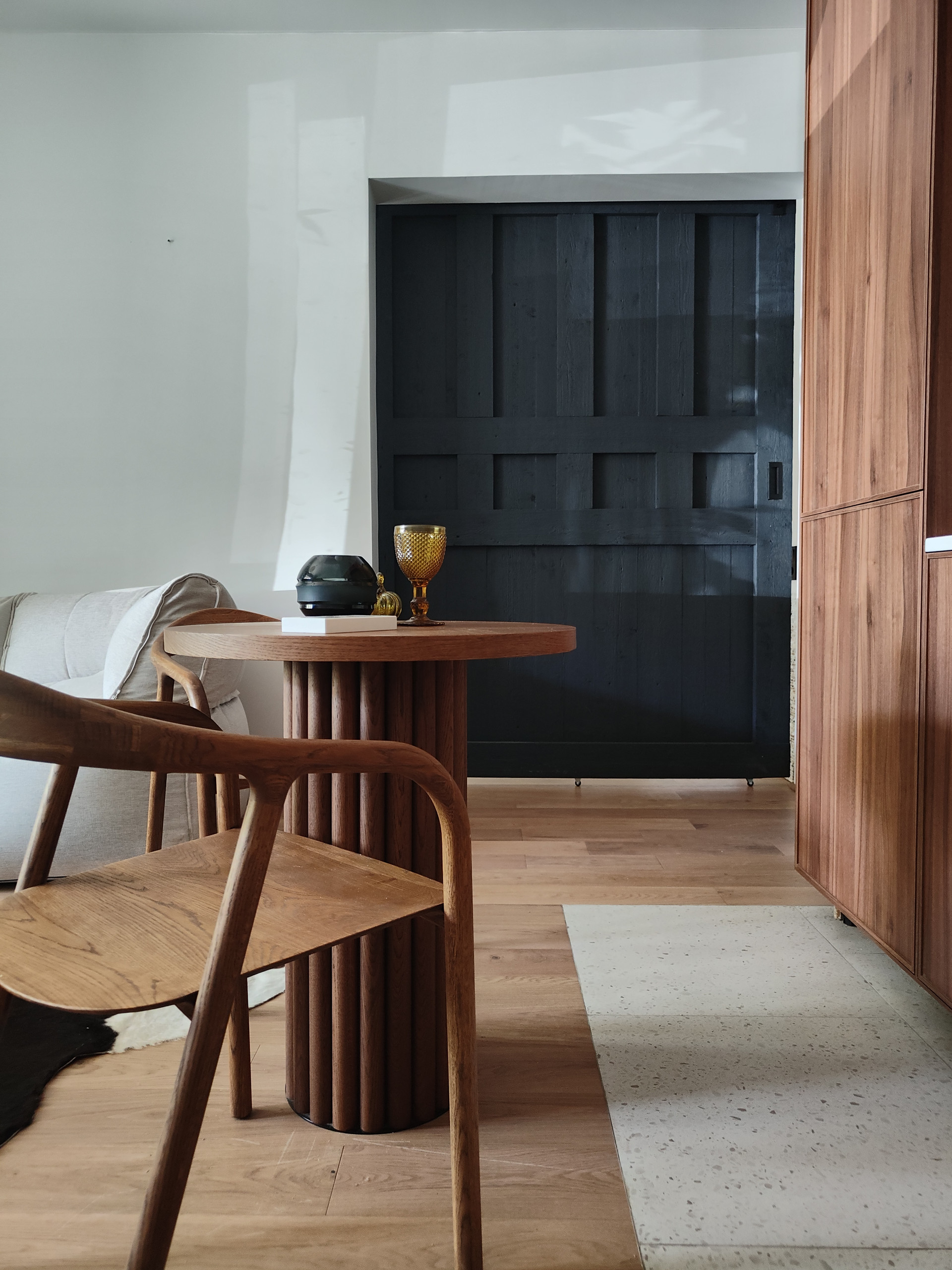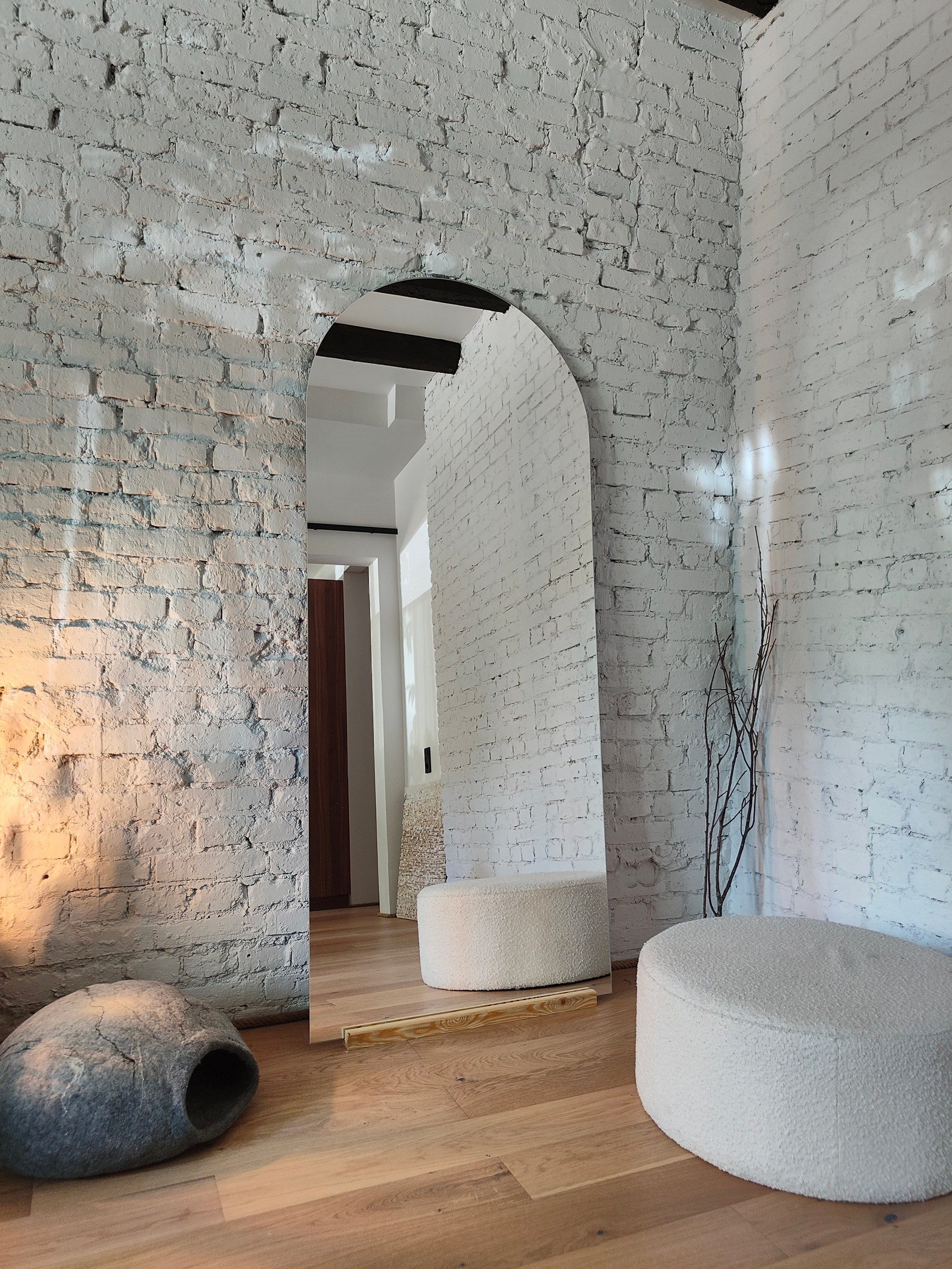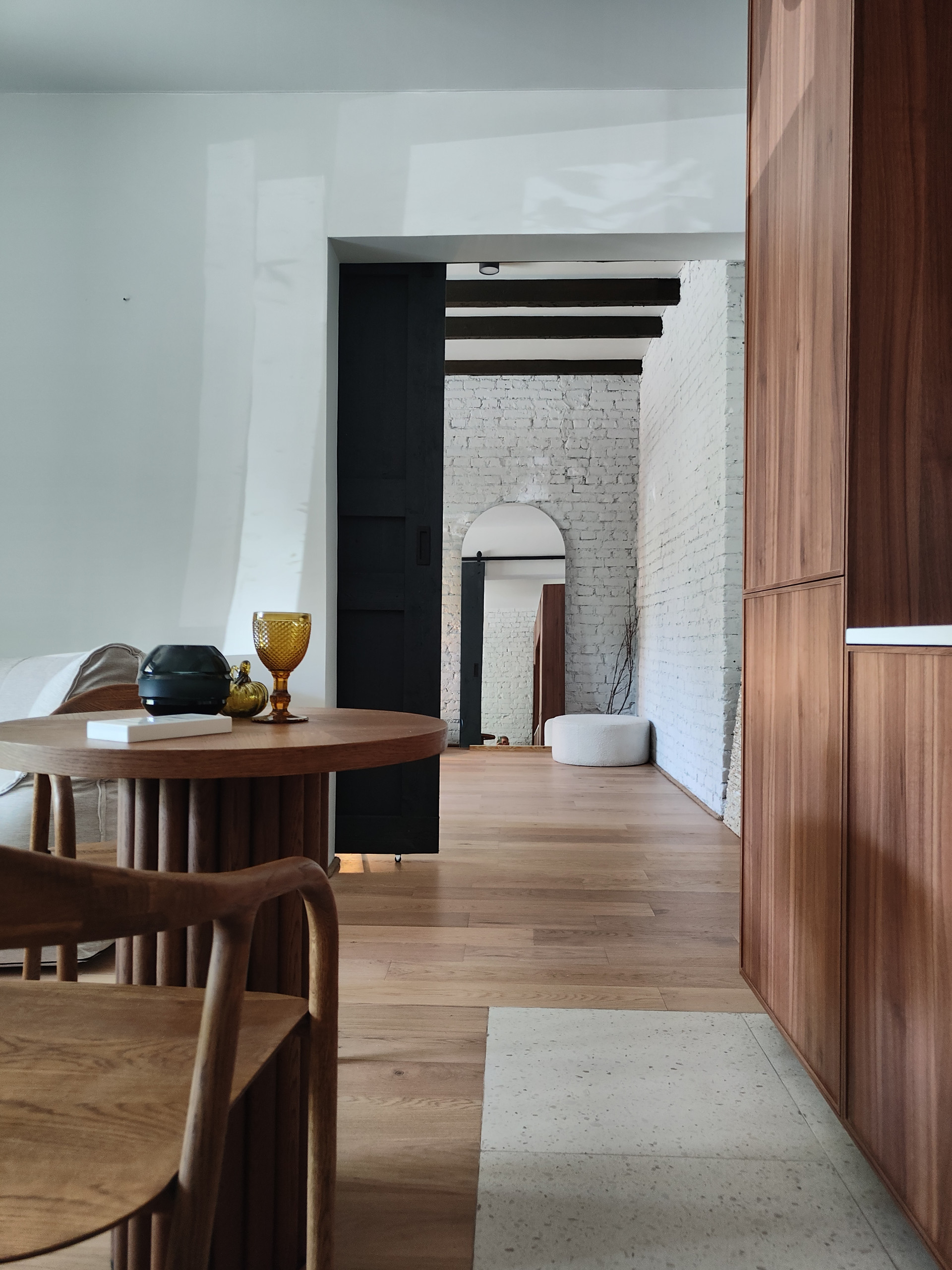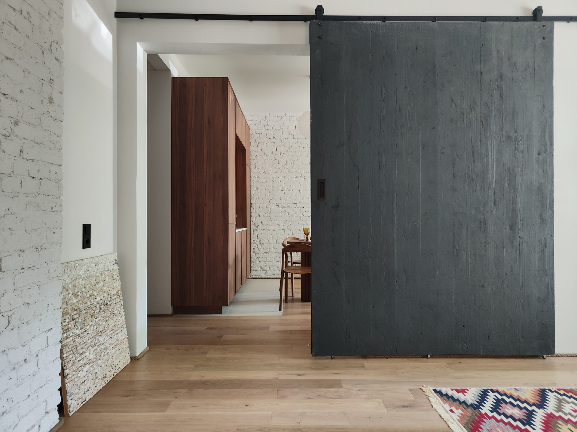 В ванной комнате два окна и отдельно стоящая ванна. Квартиру украшает старинная амбарная дверь из Ярославля.