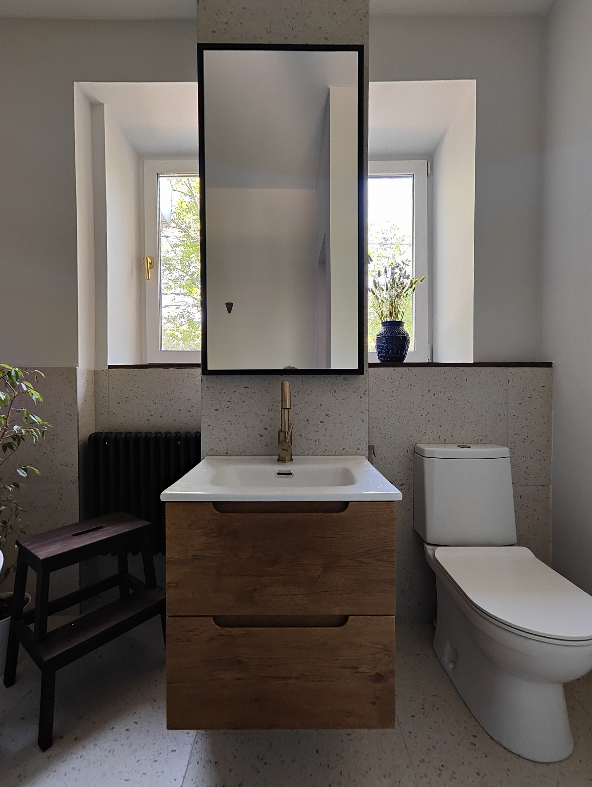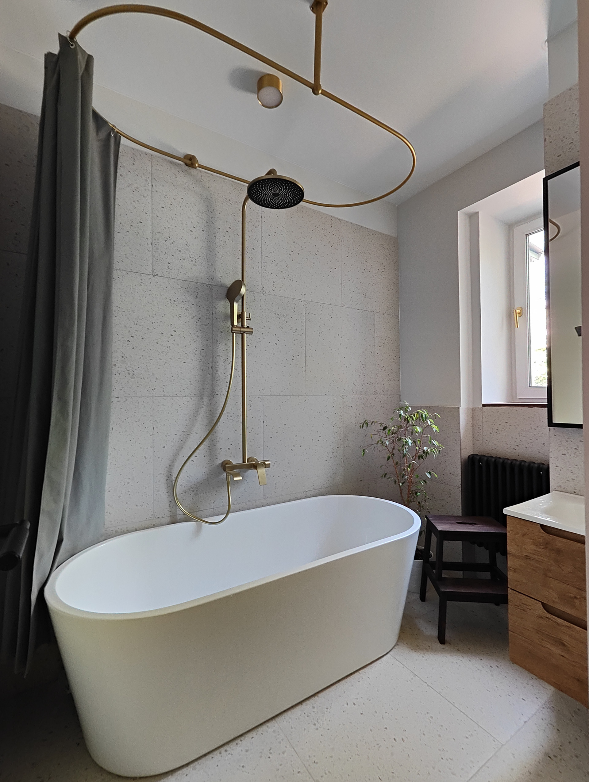 В квартире произведена реставрация исторических деталей и выполнен премиальный ремонт: новые окна, натяжные потолки и светильники, настоящий дубовый паркет. В спальне сохранены исторические деревянные балки. Реставрированы кирпичные стены. Новый дизайнерский радиатор в ванной, остальные радиаторы реставрированы. Новая плитка терраццо, реставрация радиаторов, подогрев пола и теплая стена в ванной, гигиенический душ, новые двери скрытого монтажа, повышенная шумоизоляция стен, полов и потолка.