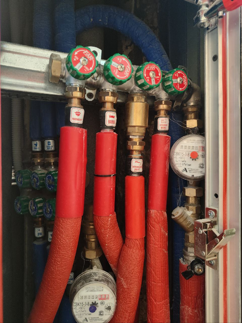 Полностью новая дорогая инженерка – электропроводка, вода, канализация, коллекторный узел, установлены розетки, выключатели и диммеры Schneider.