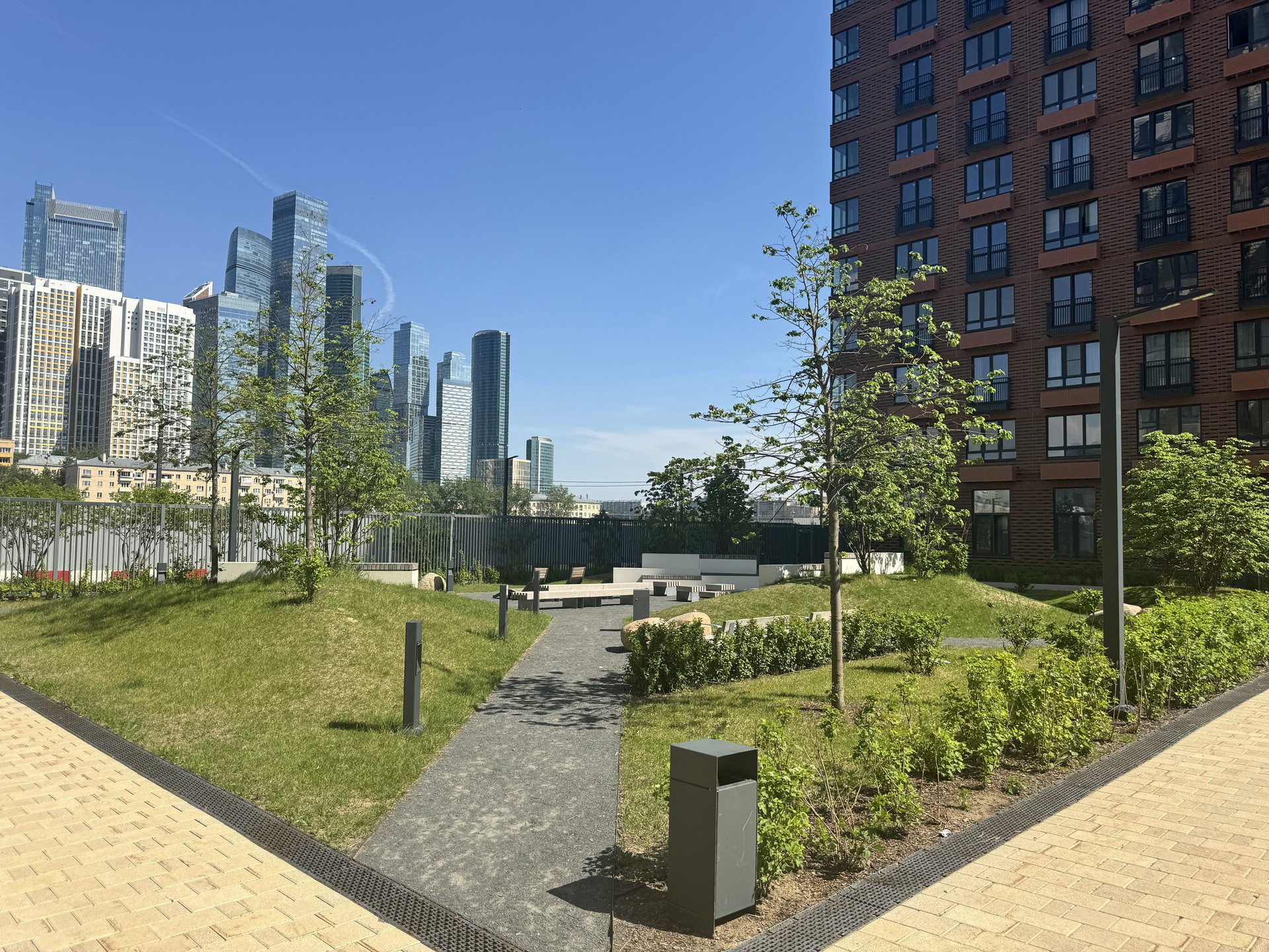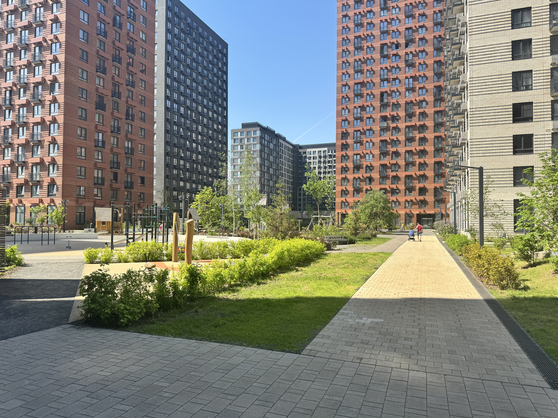 Во внутренних дворах-парках комплекса уютно и безопасно: здесь много зелени, установлено видеонаблюдение, нет машин. Видеодомофон с доступом через мобильное приложение. Подземный паркинг с возможностью недорого арендовать или купить машиноместо.