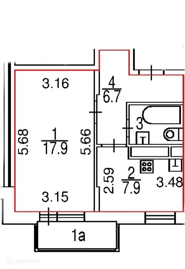 Общая площадь 35.9 м2