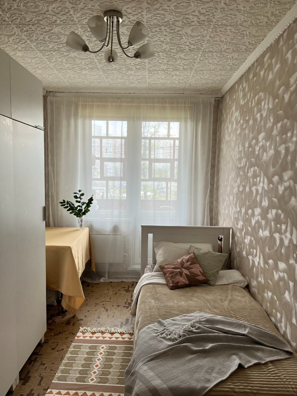 6. Квартира чистая и светлая, недавно оштукатуренный белый потолок высотой 2,65 м, проведена замена всех стеклопакетов на фирменные окна Kaleva, а также розеток и выключателей. Свежий ремонт в ванной и туалетной комнатах. Можно без опасений заезжать и жить, а делать или не делать ремонт в будущем —  вопрос вашего желания, а не необходимость.