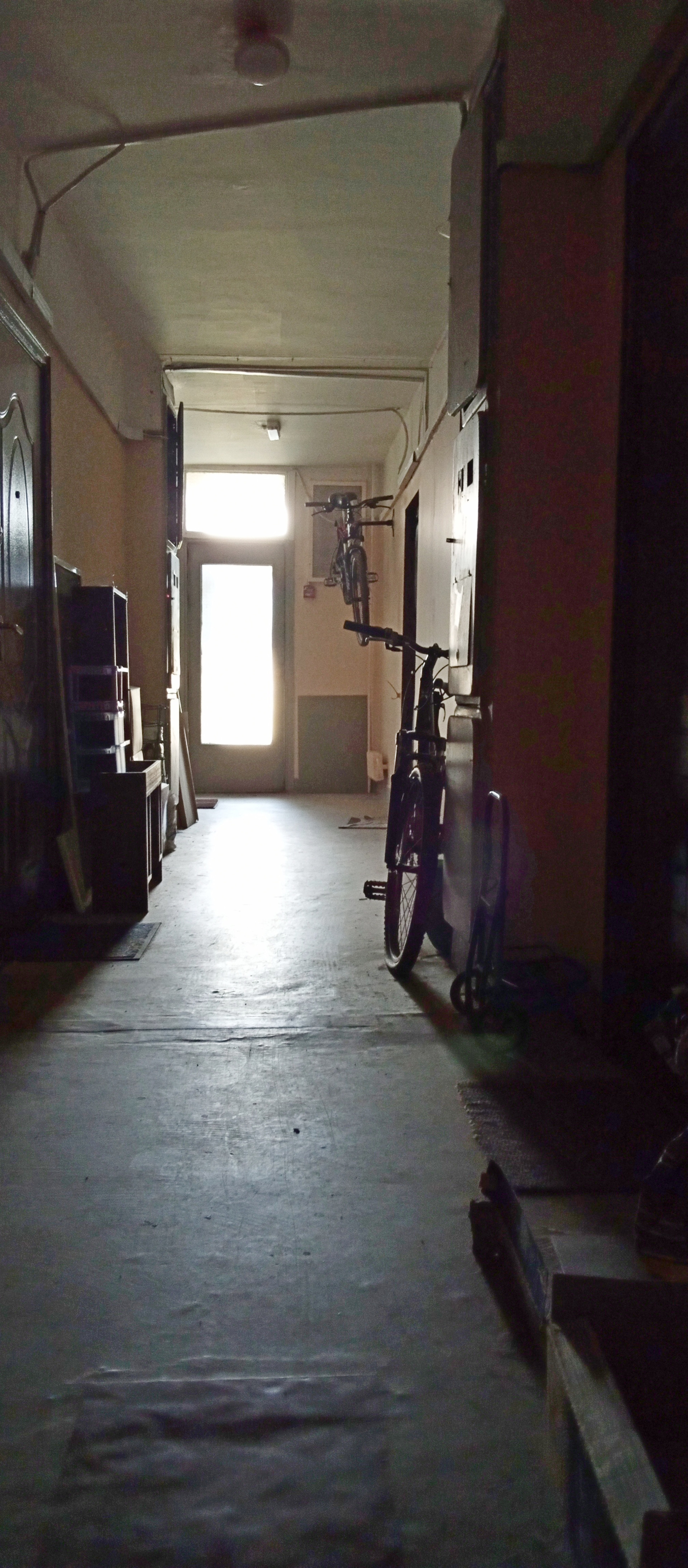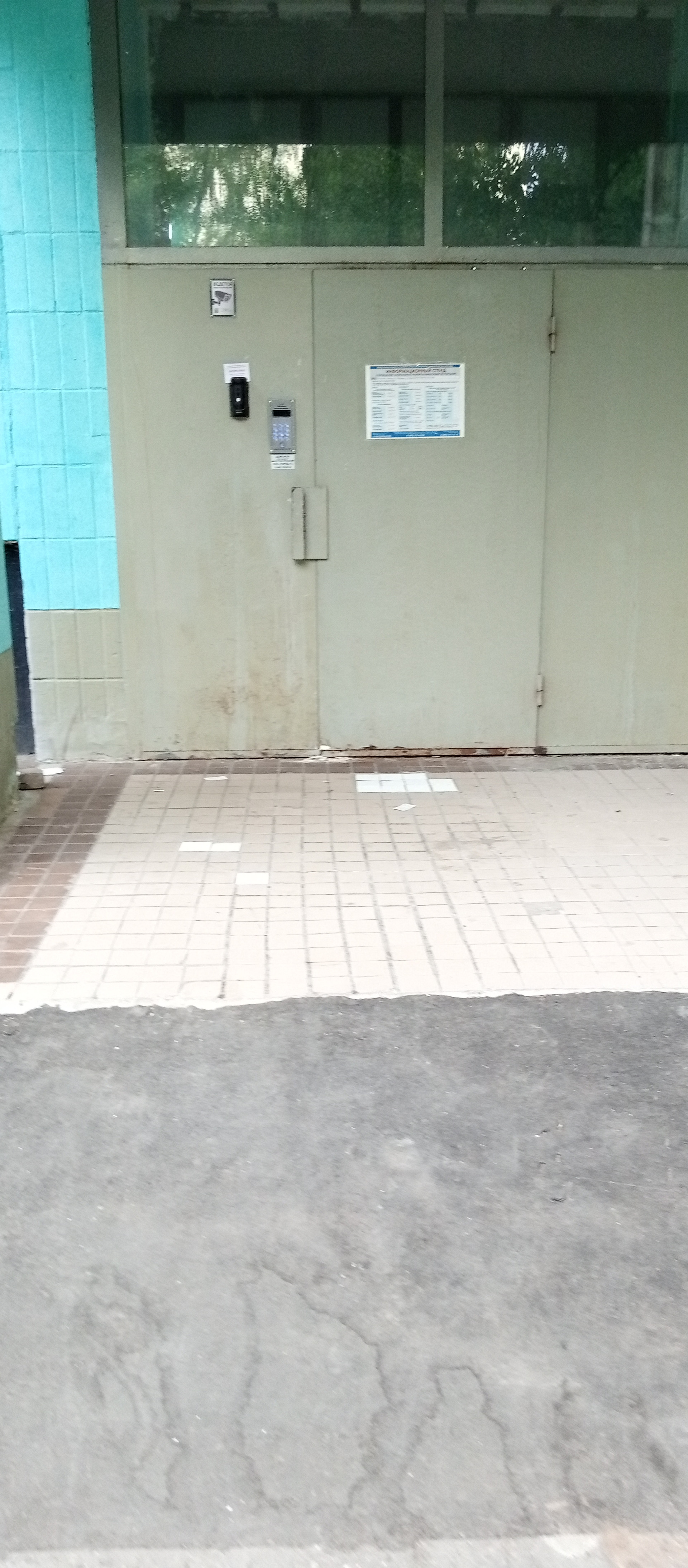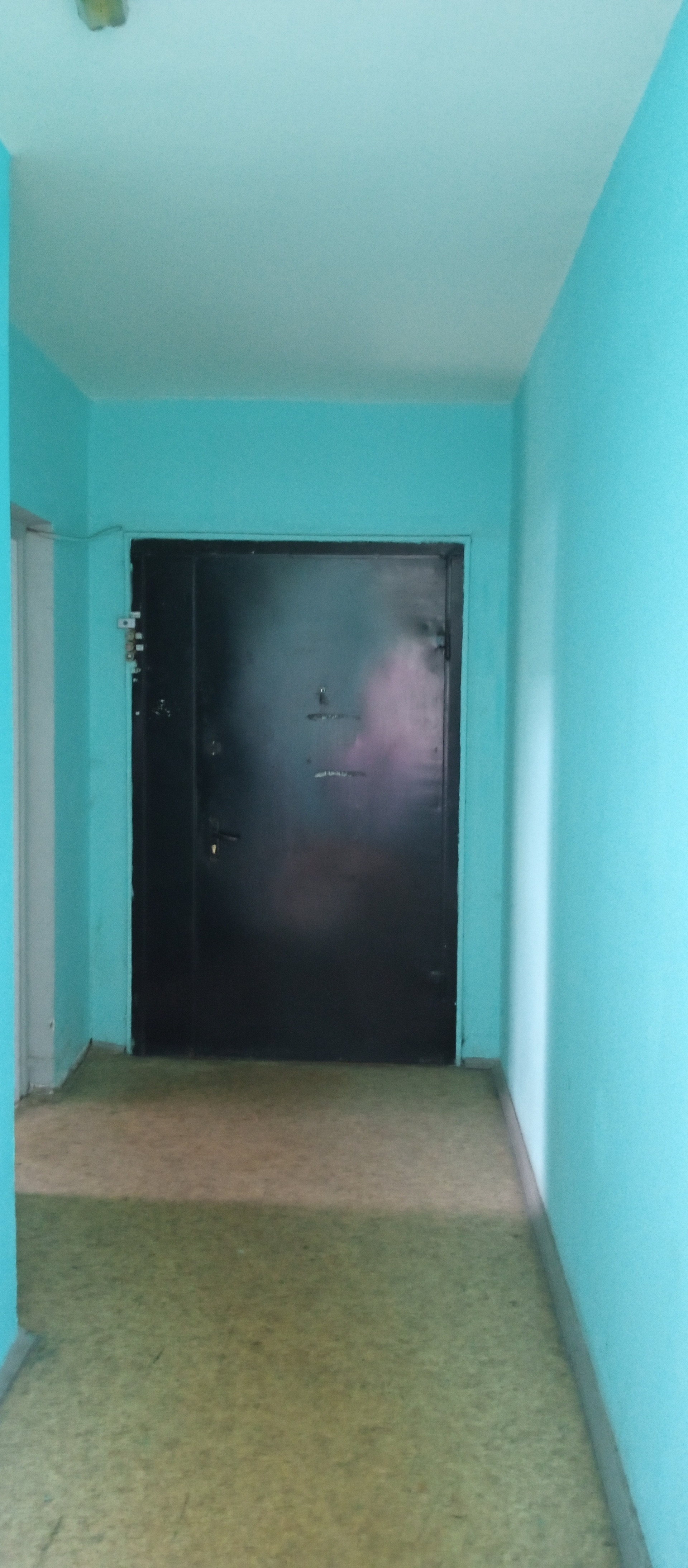 Входной тамбур на 4е квартиры закрытый глухой металлической дверью с замком.