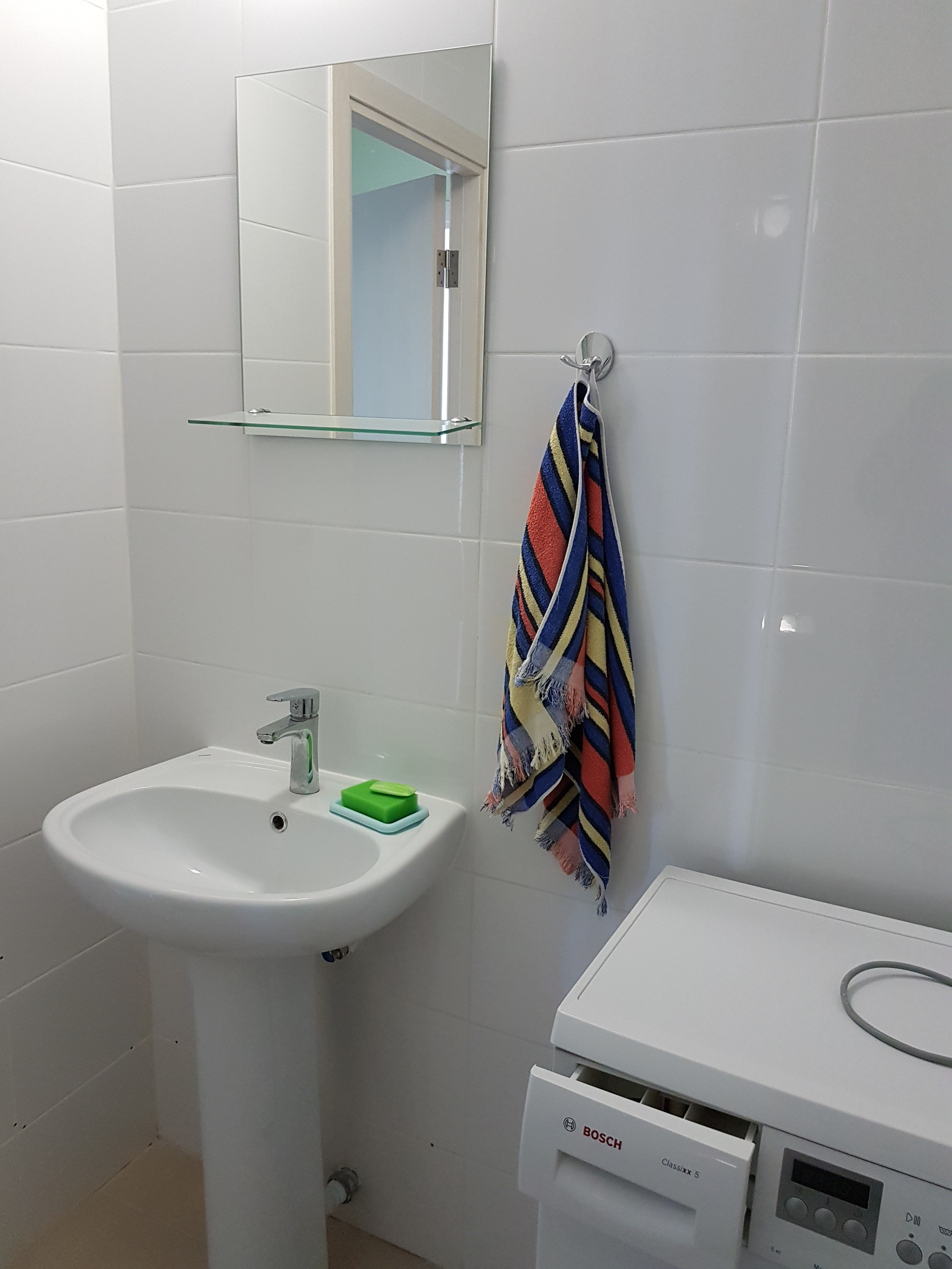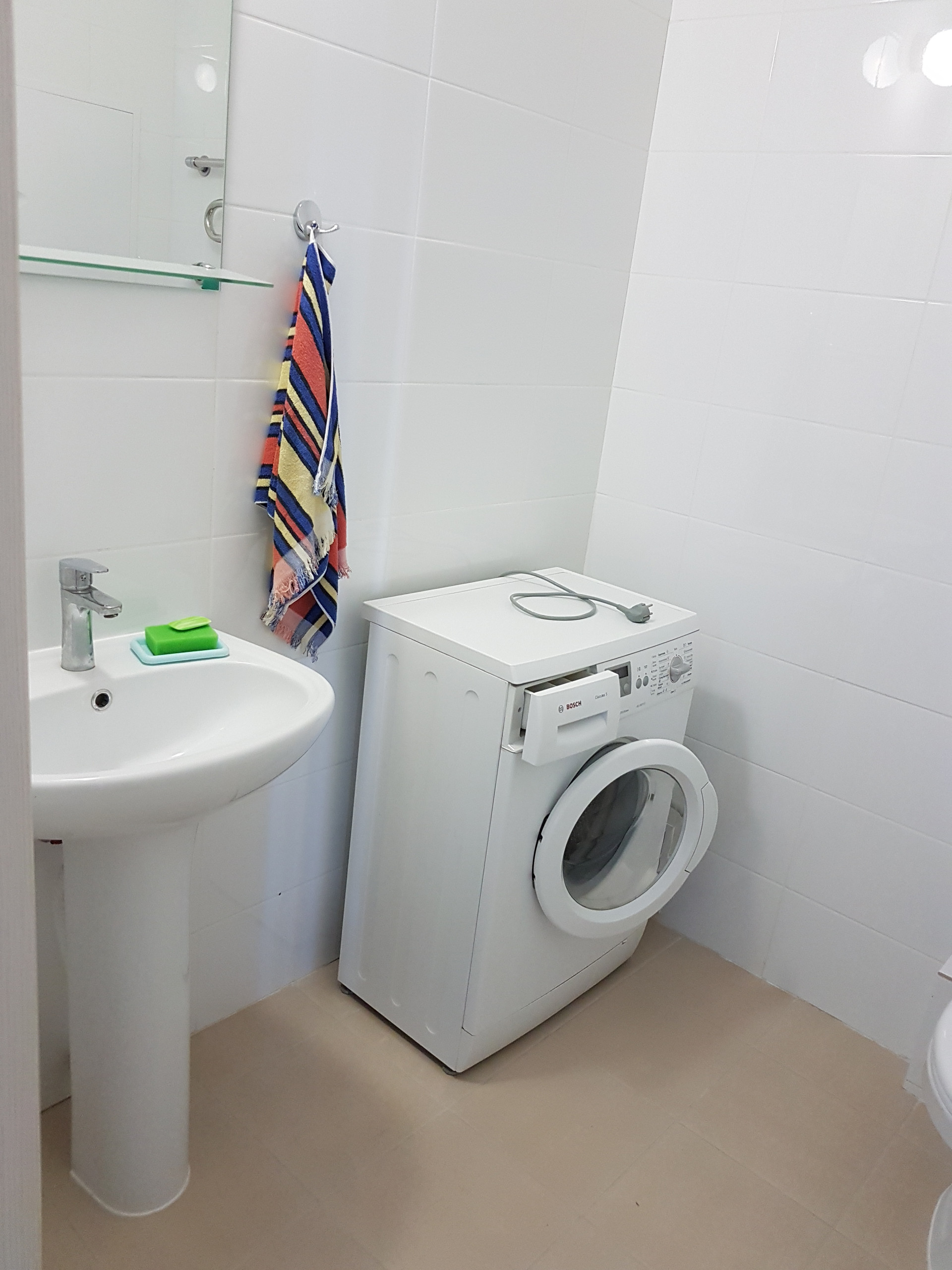 В квартире 2 просторных санузла: в одном установлена ванна, унитаз и раковина, в другом - раковина, унитаз и стиральная машинка, возможно использование как технической комнаты, так и установить душевую кабину.