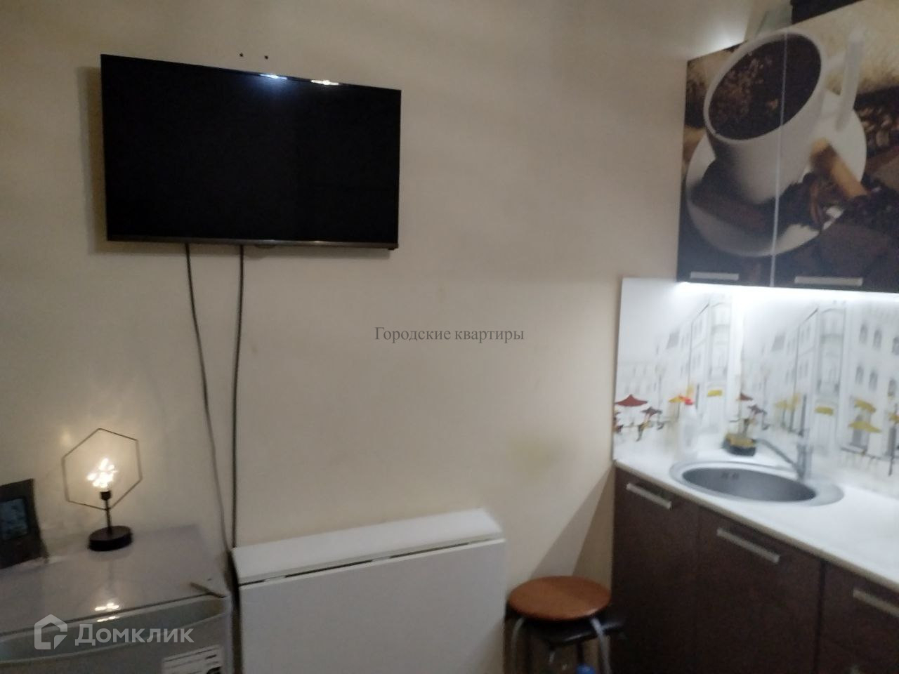 В студии сделан хороший ремонт в приятных постельных тонах. Пластиковые окна, ванная комната отделана плиткой. Окна выходят на зеленый двор.