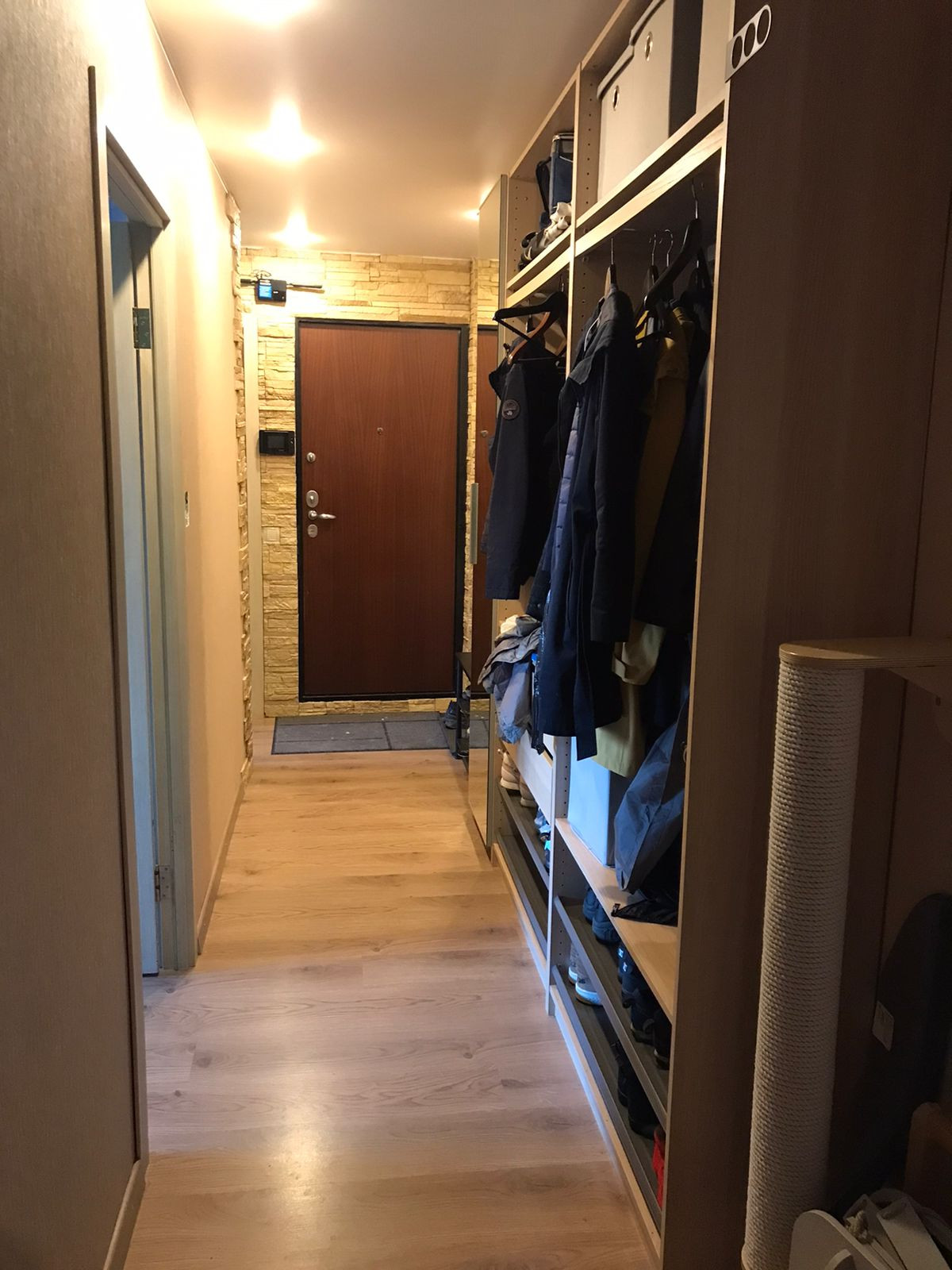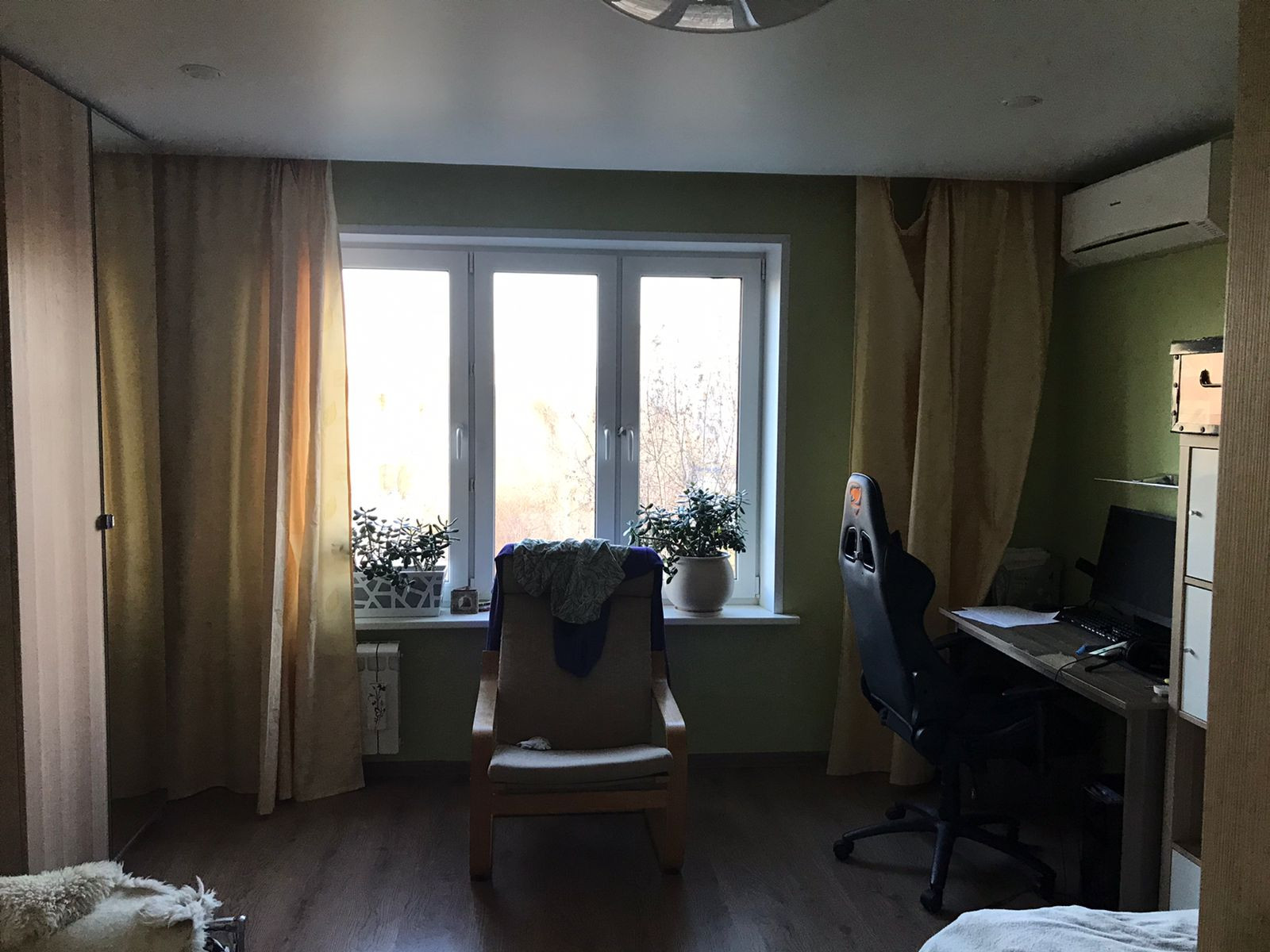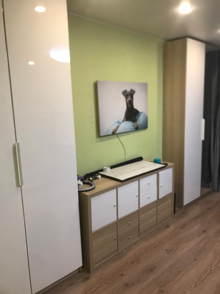 Во всех комнатах, стоят кондиционеры( холод/тепло), на кухне, большой комнате, в коридоре и на балконе потолочное светодиодное освещение, потолки натяжные, в маленькой комнате светодиодная подсветка по периметру потолка.