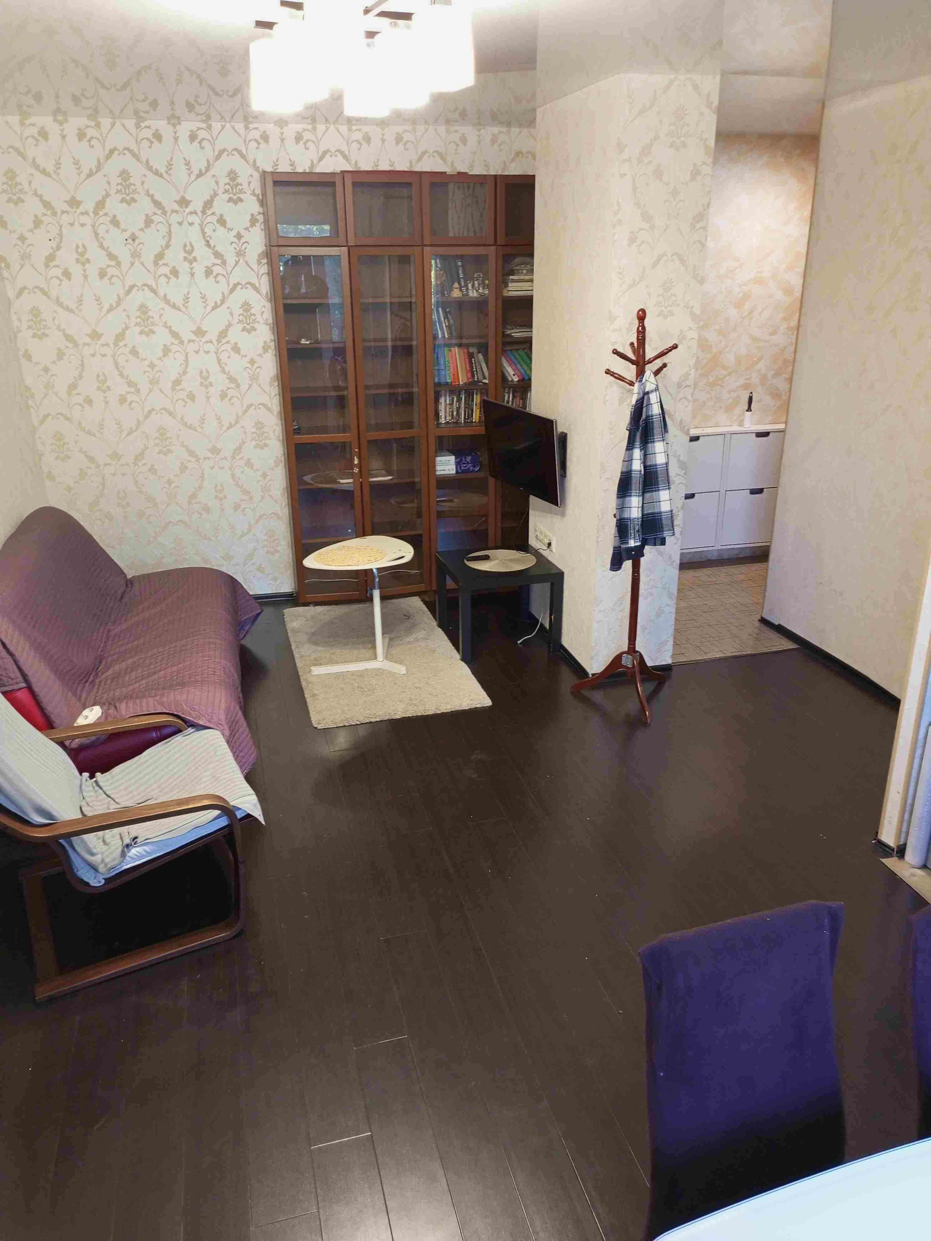 Продается двухкомнатная квартира в тихом зеленом микрорайоне. Планировка смежно-проходная, линейная, из кухни и комнаты сделали студию, есть балкон и гардеробная-кладовка. Состояние жилое, квартира вложений не требует, ремонту лет пять, фото соответствуют, продажа с мебелью и техникой: кондиционер, холодильник, стиральная машина, газовая колонка. Подъезд чистый после косметики, без запахов, подвал сухой и вход в него в другом подъезде, рядом Управа, все коммуникации и придомовая территория содержатся в близко к идеальному состоянию, двор и улица без машин, стоянка у управы. Дом кирпичный под реновацию 29-32гг, "хрущевка". Окна - нешумная улица через двор, вид на зелень. До метро 7 минут пешком, вся инфраструктура есть. Документы 12г, полная стоимость в договоре, в эту цену продажа с мебелью и техникой, можно заехать и жить, или сдать в аренду. Ипотека приветствуется. Свободная продажа, прямая продажа, торг возможен.