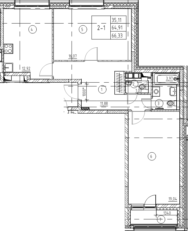 Общая площадь 66 м2