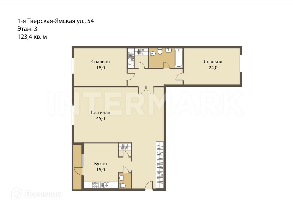 Лот 64485. Предлагается изумительная трехкомнатная квартира в элитарном жилом доме на 2-ой Тверской-Ямской улице, 54. Дом обладает лучшей приватной зеленой территорией. Общая площадь квартиры - 123,4 кв.м. плюс большой застекленный балкон. Вы можете сделать косметику, заехать и жить или воплотить любые дизайнерские идеи для более капитального ремонта.