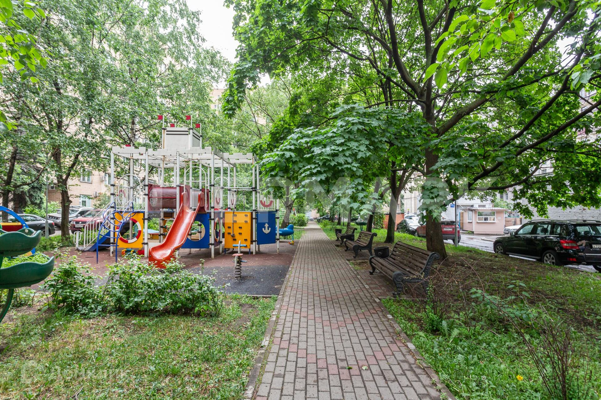 Железобетонные перекрытия, кирпичные стены, высокое качество строительства. Дом обладает самым лучшим зеленым двором. Это просто оазис тишины и спокойствия. Все ухожено: дорожки, газоны, подъезды, лифты. Во дворе детская площадка, места для парковки машин жителей дома. Двор охраняется, в подъезде круглосуточно работают консьержи. Из окон квартиры открывается вид на кроны деревьев. Очень тихо.