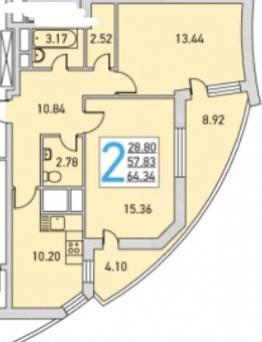 Общая площадь 64.34 м2