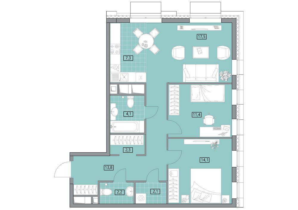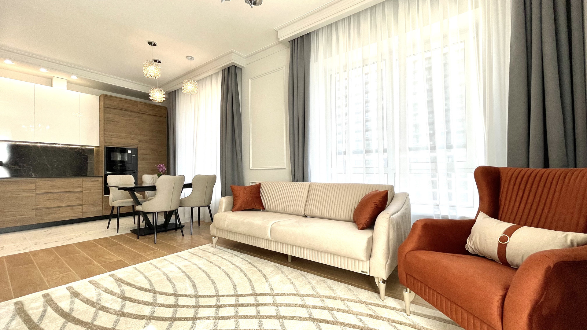 Абсолютно новая дизайнерская отделка НЕ от застройщика, с мебелью и техникой.