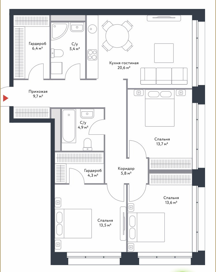 Общая площадь 98.7 м2
