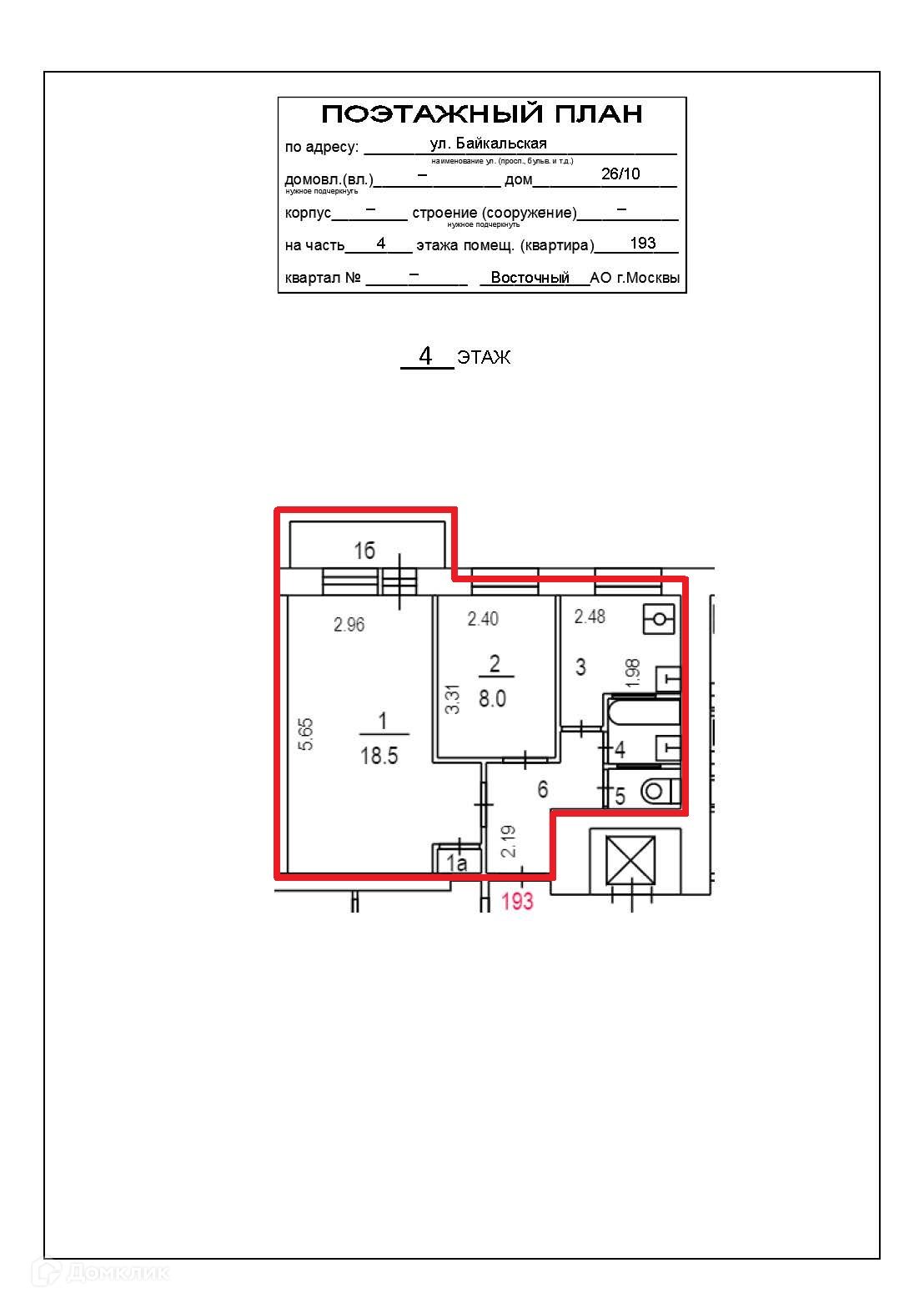 2-комнатная квартира, 40.2 м2, этаж 4 / 9, на продажу в Москве, Байкальская улица, 26/10
