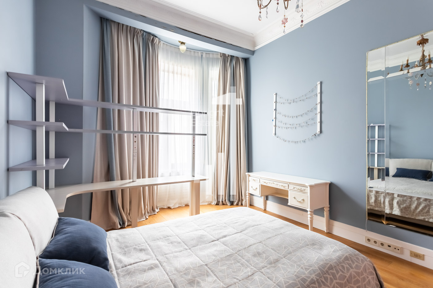 4 спальни, 1 из которых со своей гардеробной комнатой, а 12 окон и высота потолков 3,7 м делаю ее светлой и воздушной.