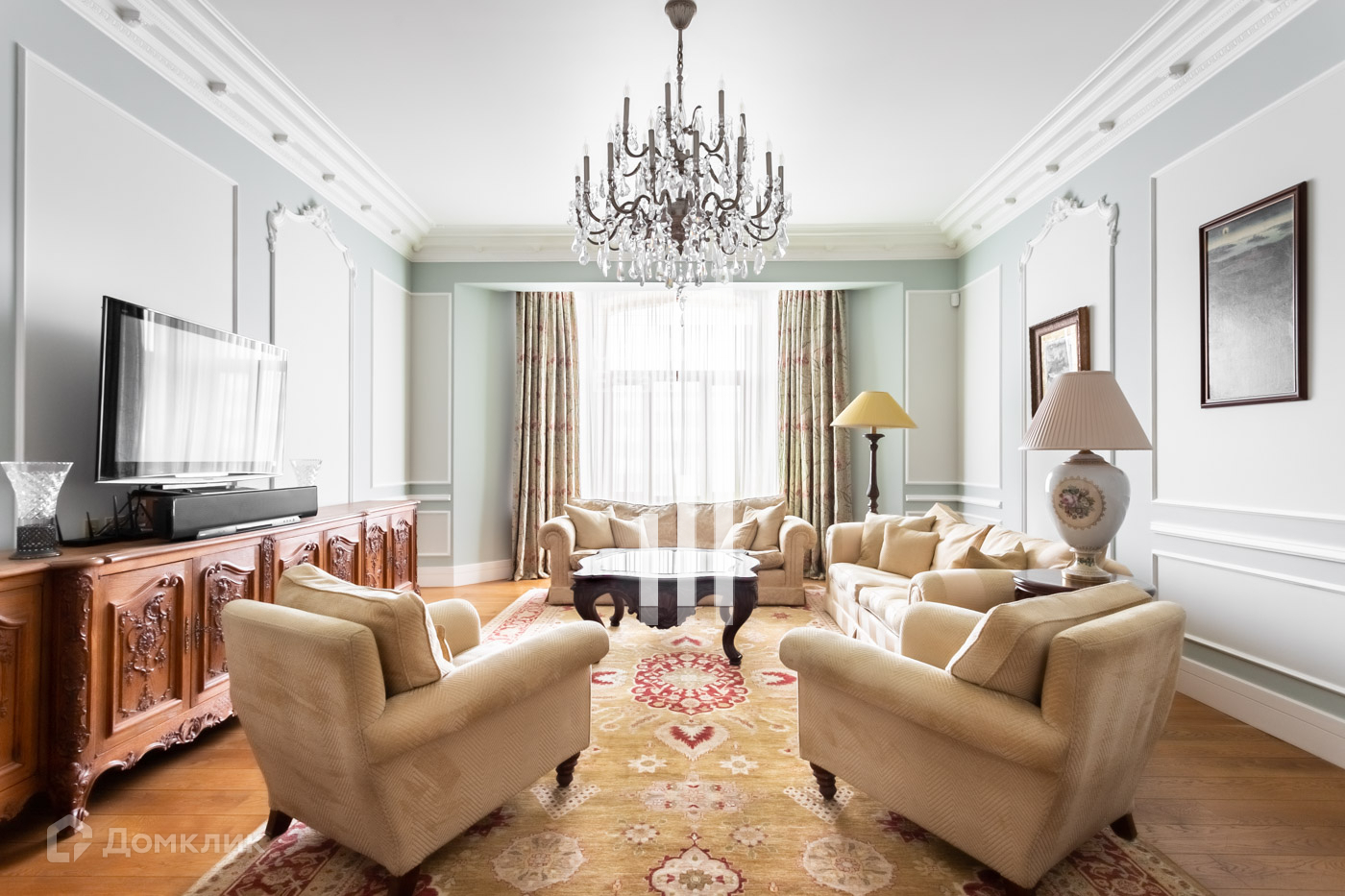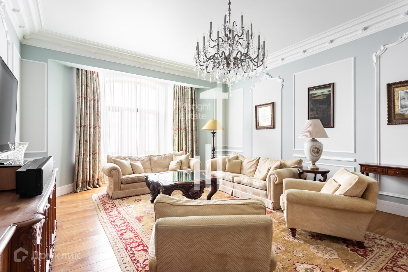 Выполнена качественная отделка в классическом стиле, часть мебели входит в стоимость.