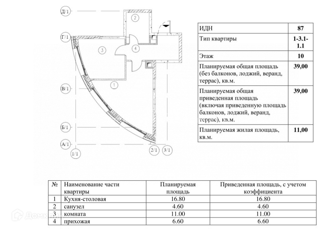 Общая площадь 39 м2