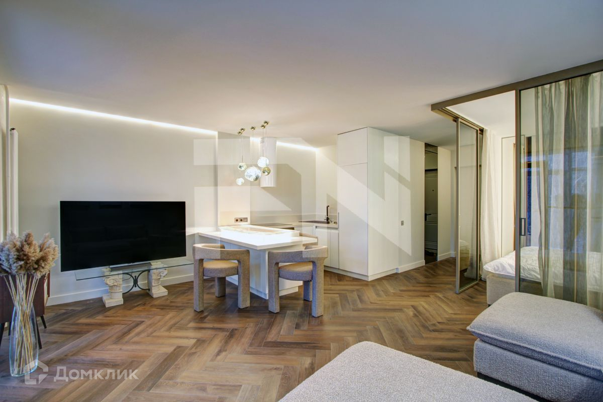 В продаже  полностью готовая к проживанию квартира студийной планировки с новым дизайнерским ремонтом  площадью 45.2 кв.м , расположенная на  4 этаже 14ти этажного кирпичного дома в 5ти минутах от метро Белорусская