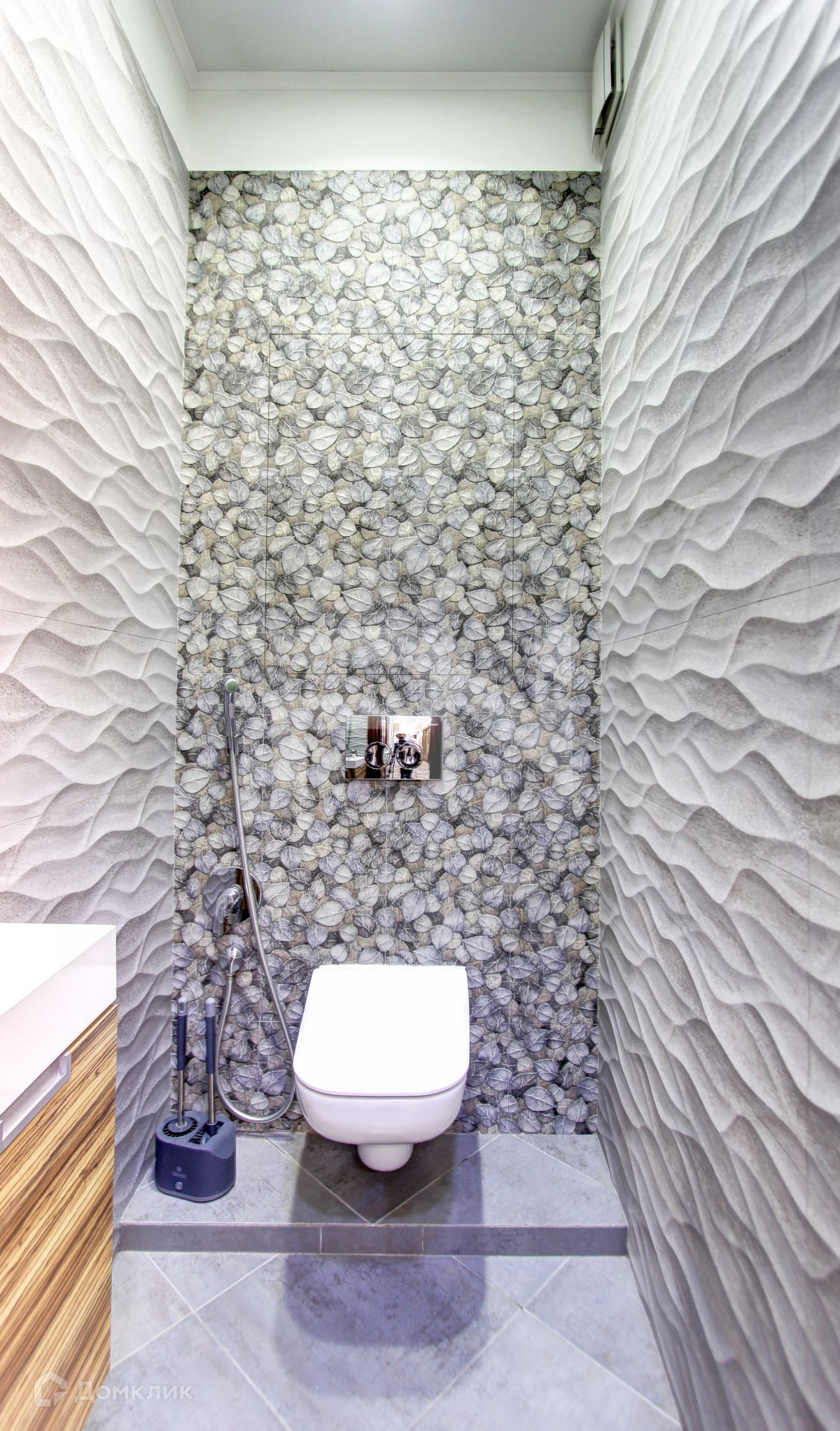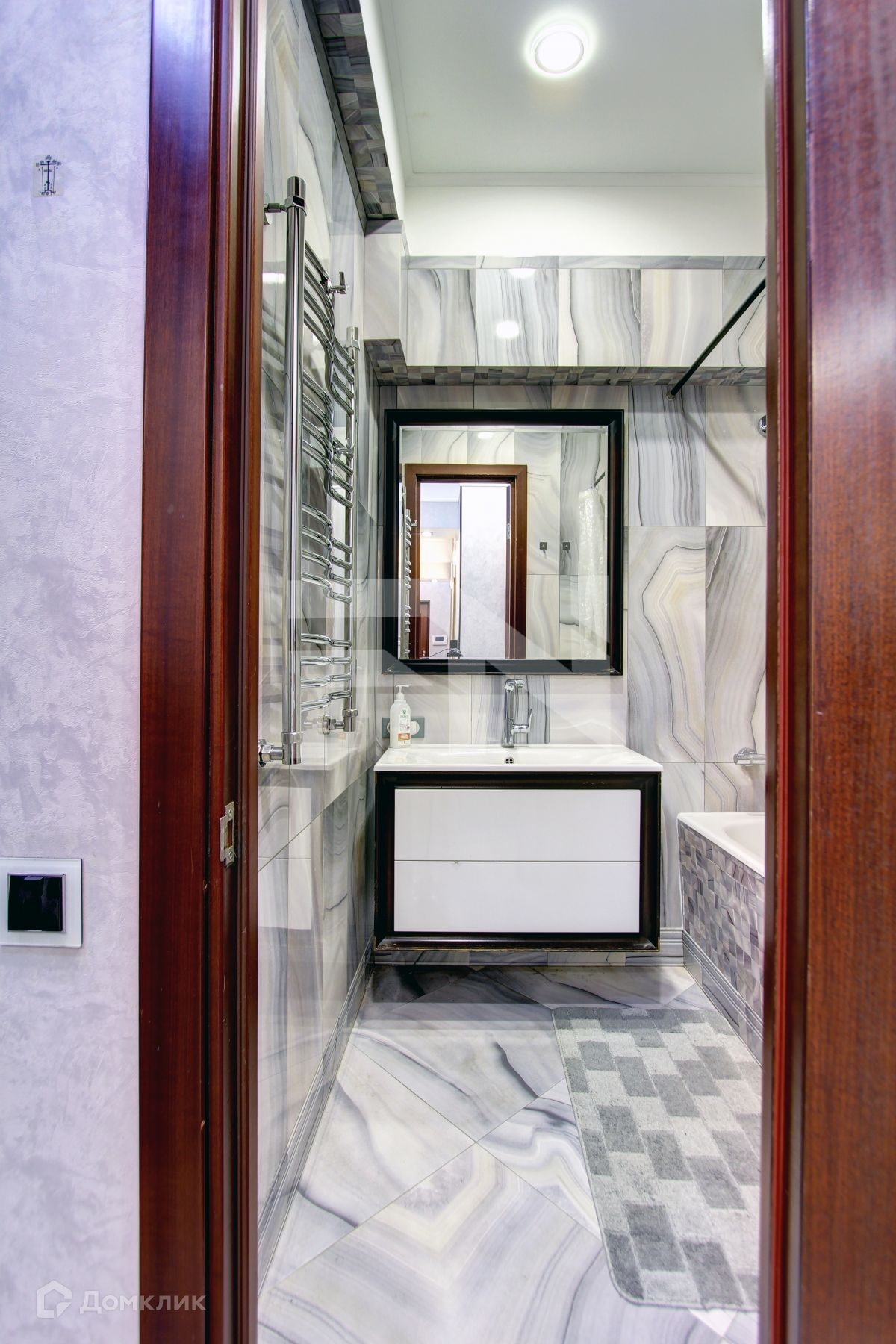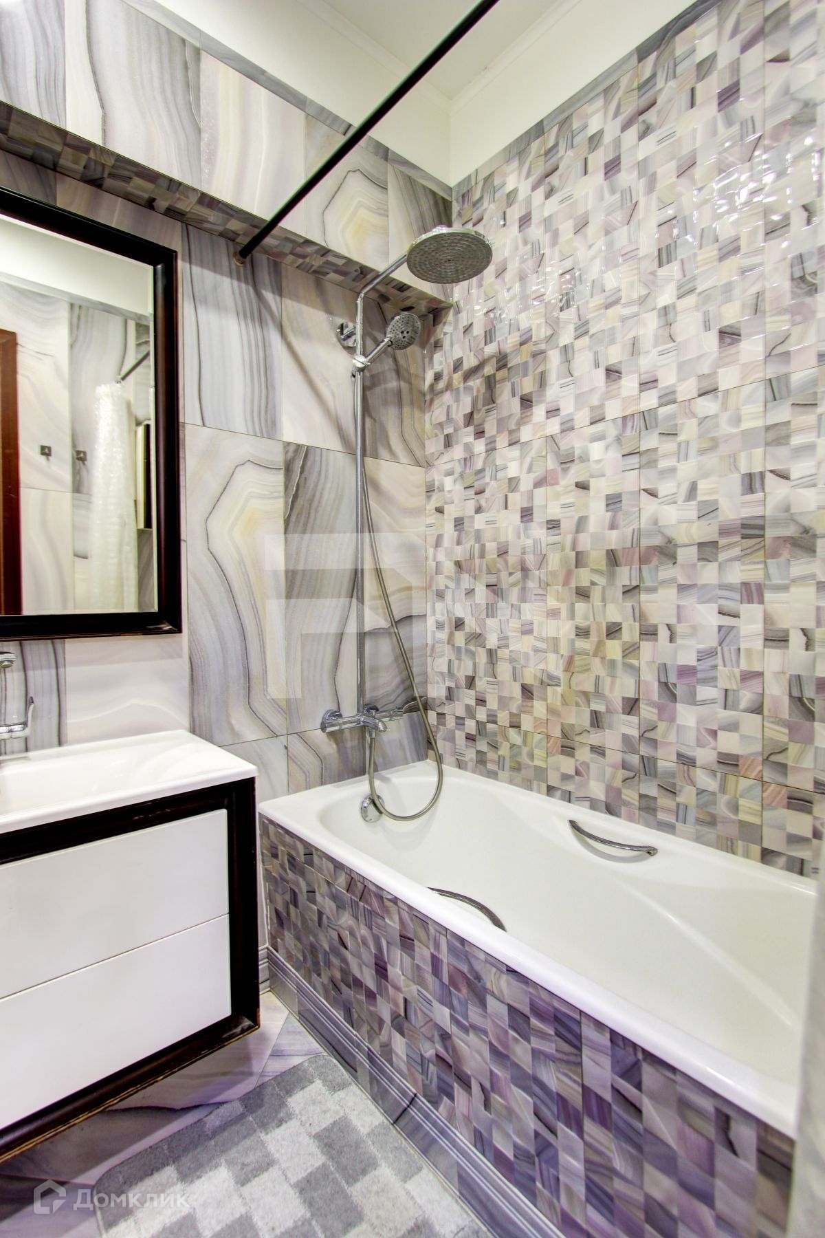 Сантехника Hansgrohe – немецкая, Ванна - Roca из Испании. Санузел выполнен из дизайнерской плитки PORCELANOSA  (Испания).