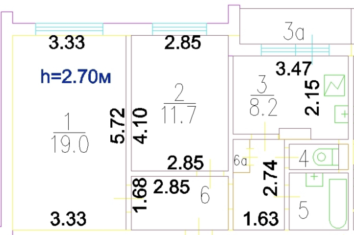 Высота потолков 2.5 м
