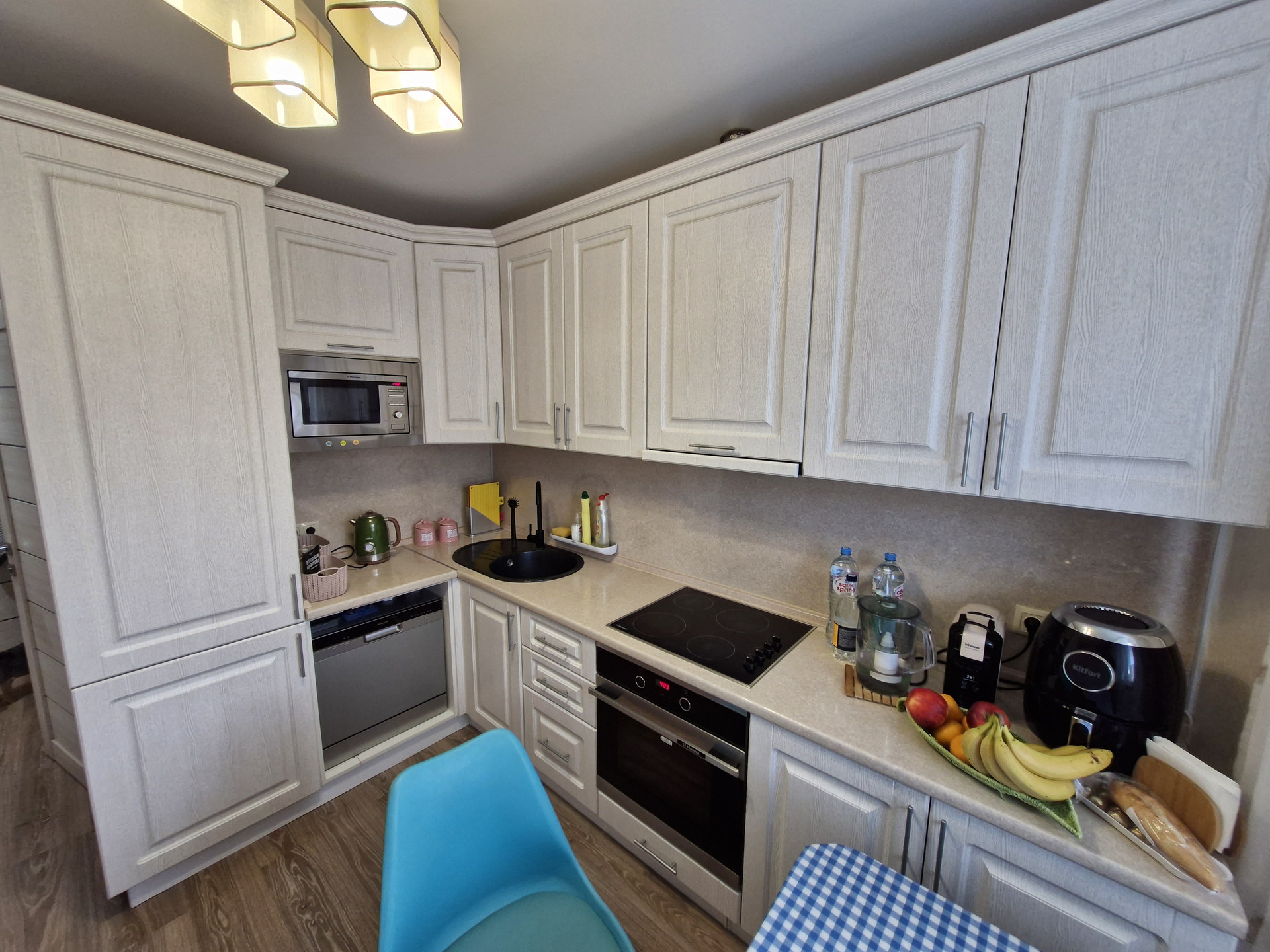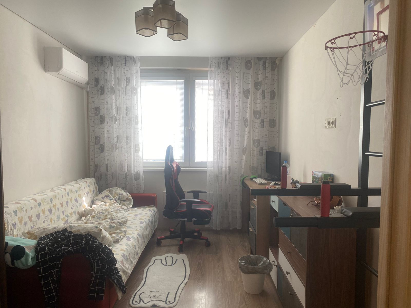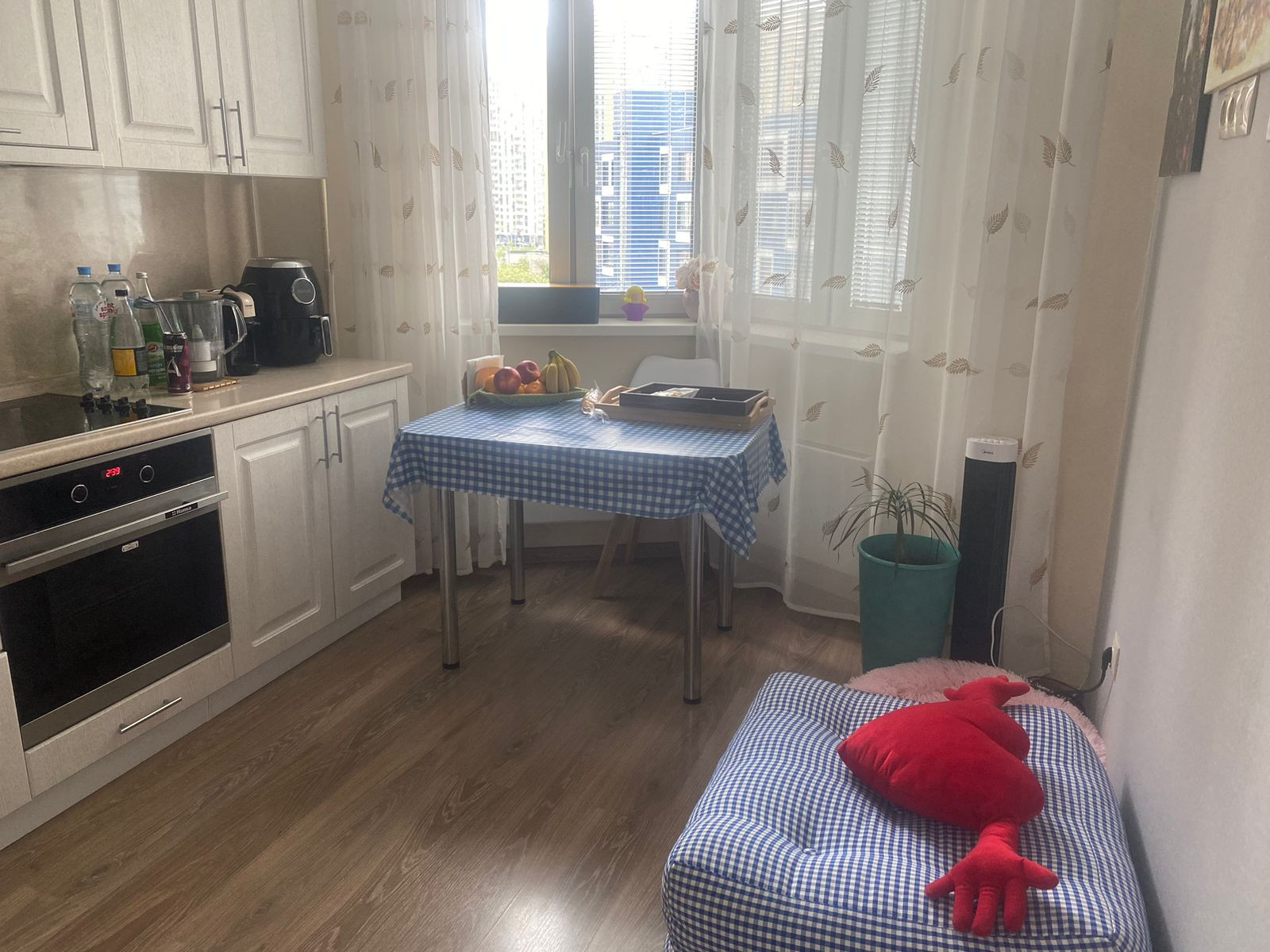 Две раздельные комнаты, есть балкон, кухня девять с половиной метров. Квартира в хорошем состоянии, продается с мебелью и техникой. Установлен кондиционер, современная кухня, качественная сантехника. Чистый подъезд, дежурит консьерж.