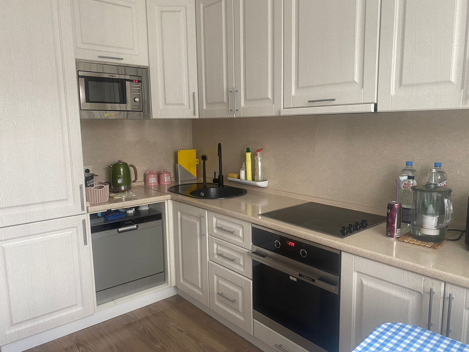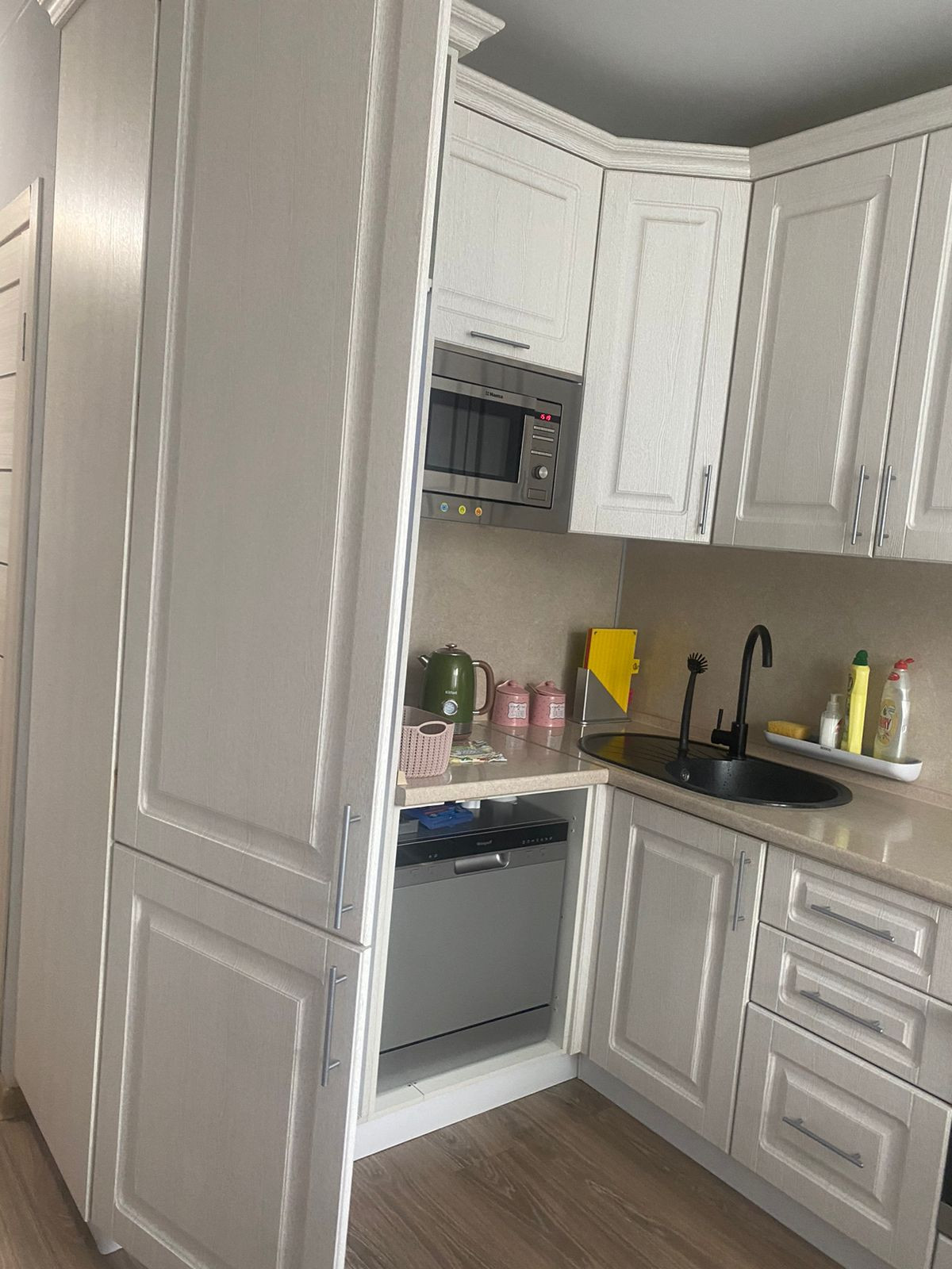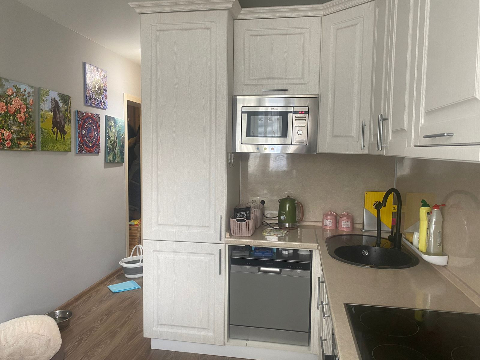 Две раздельные комнаты, есть балкон, кухня девять с половиной метров. Квартира в хорошем состоянии, продается с мебелью и техникой. Установлен кондиционер, современная кухня, качественная сантехника. Чистый подъезд, дежурит консьерж.