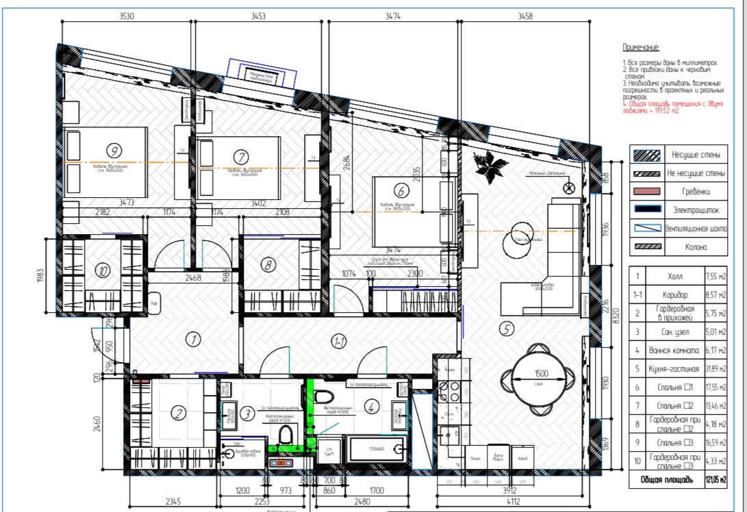 Общая площадь 121 м2