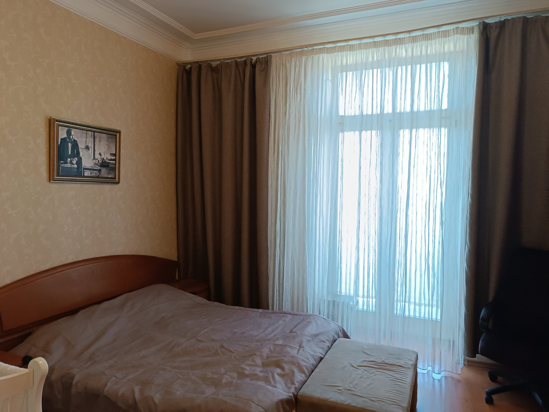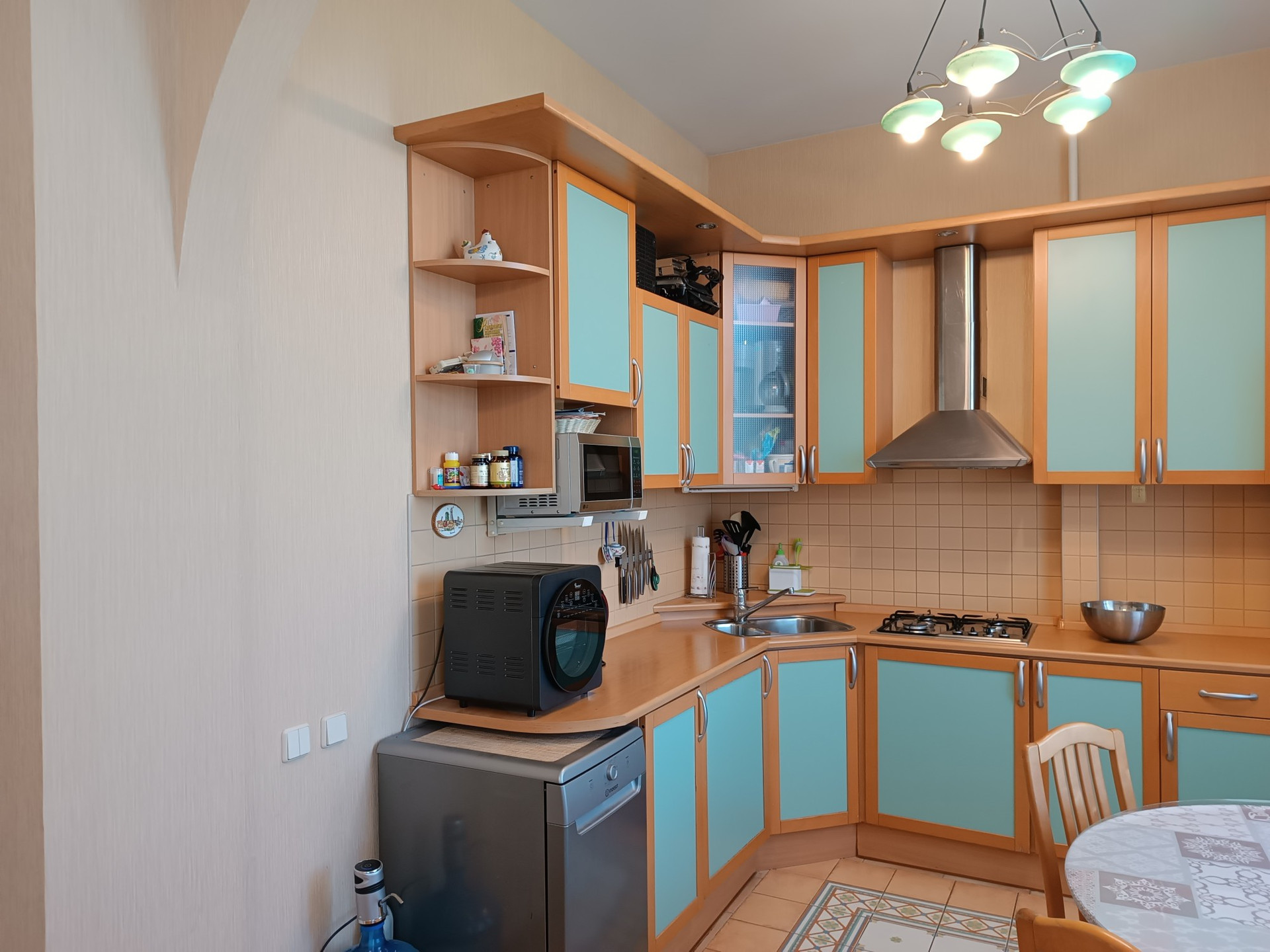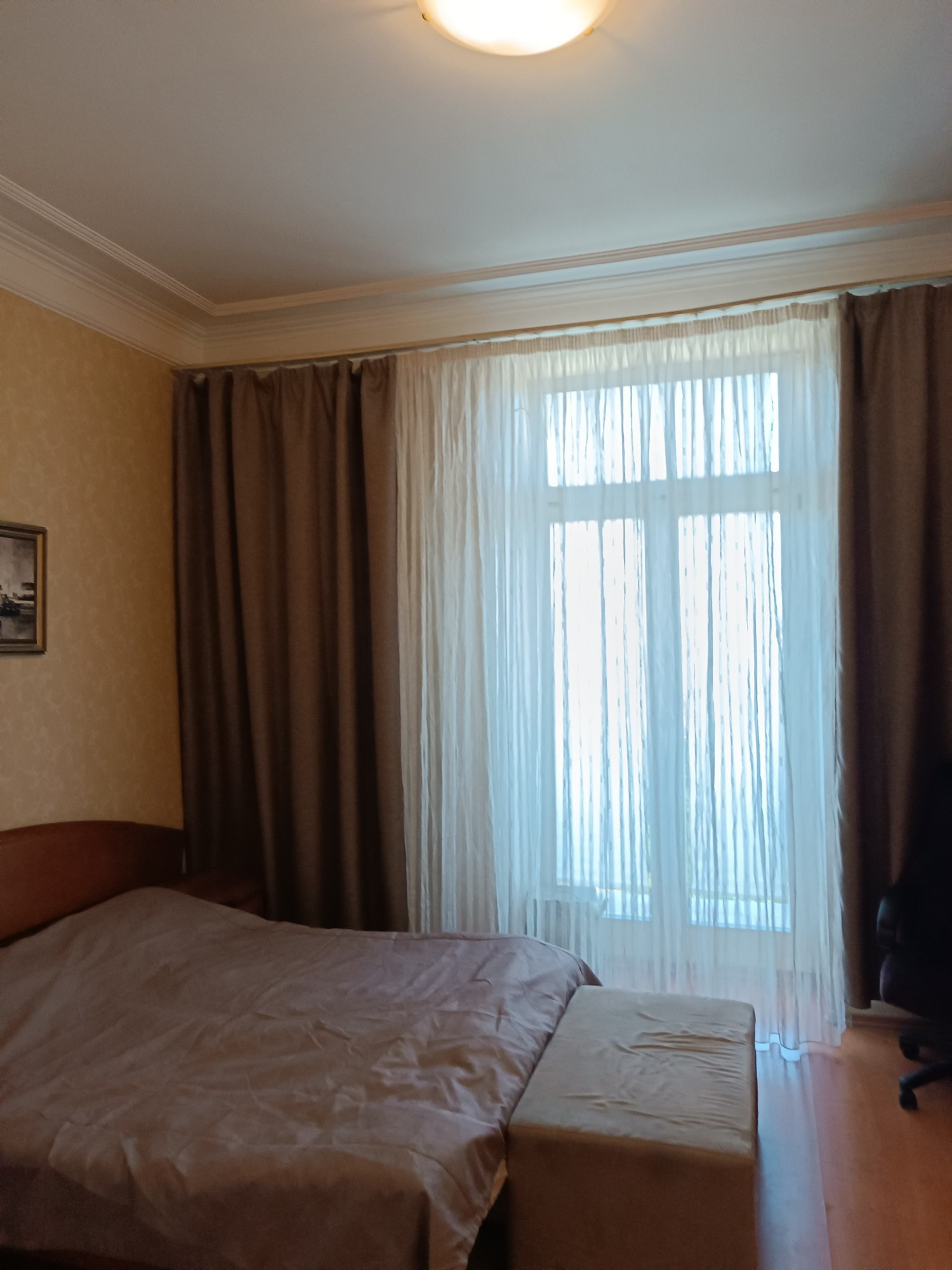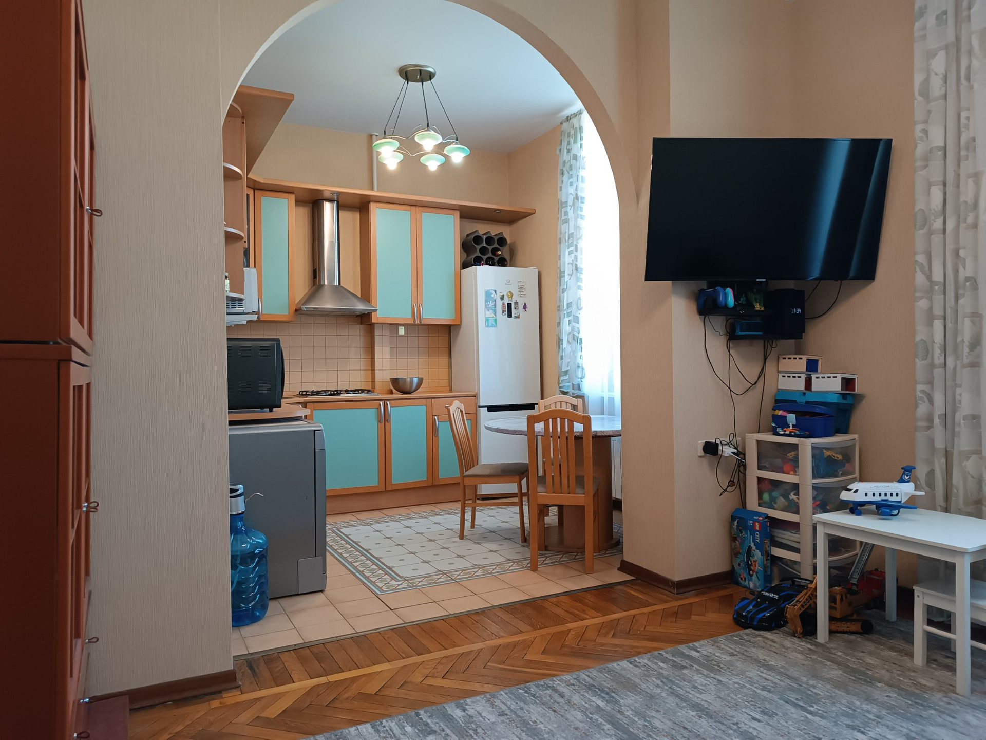 В квартире выполнен качественный ремонт 12 лет назад, полы дубовый паркет, потолки отштукатурены, плитка Villeroy&Boch в сан.узле и на полу кухни, встроенный кухонный гарнитур, комнаты полностью укомплектованы мебелью, в каждом помещении есть кондиционер, качественные стеклопакеты. в коридоре есть две большие кладовки с антресолями .
