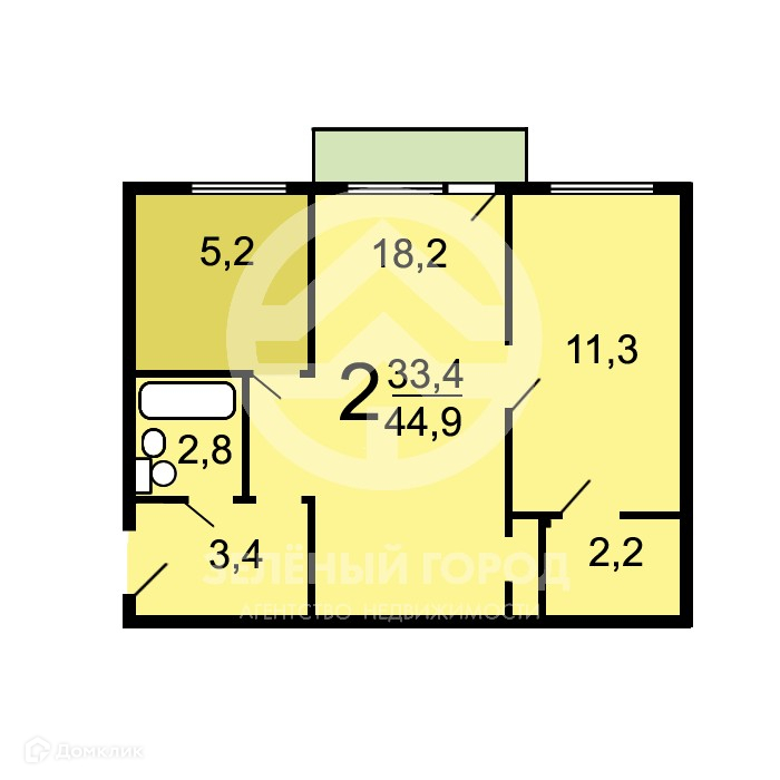 Жилая площадь 30.4 м2