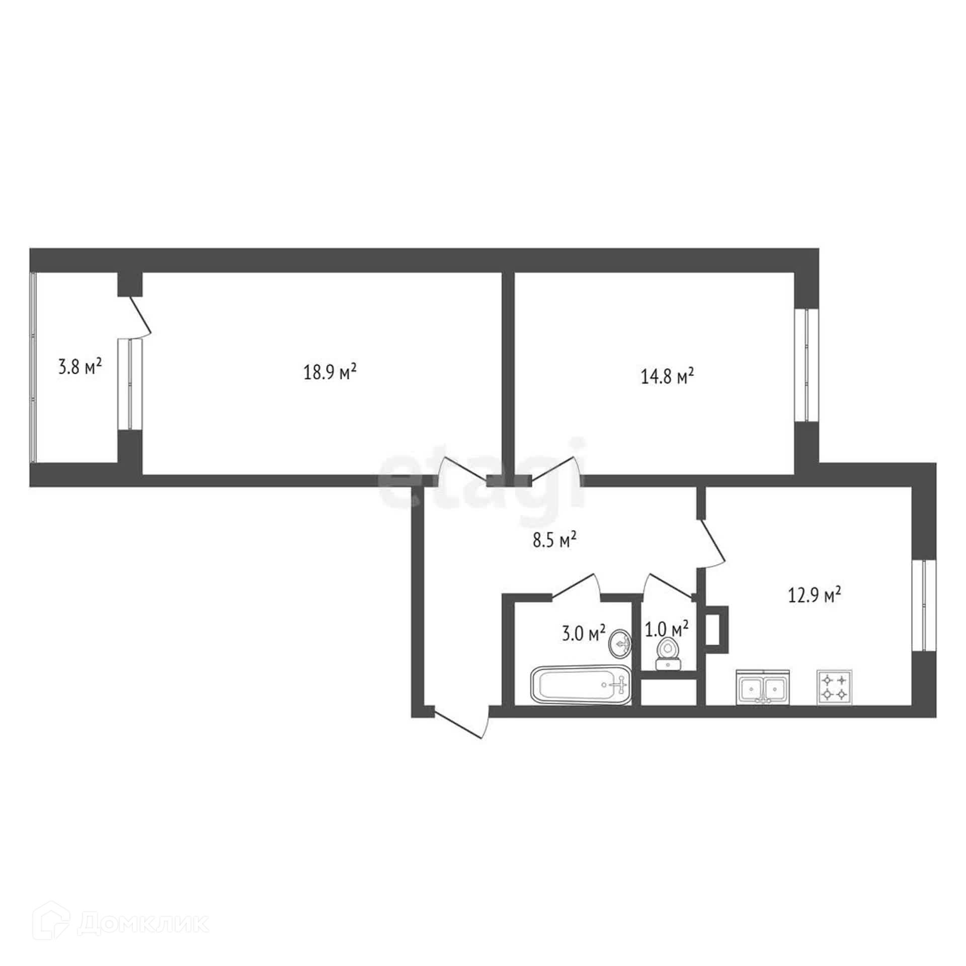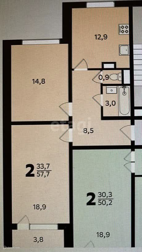 Общая площадь 57.7 м2